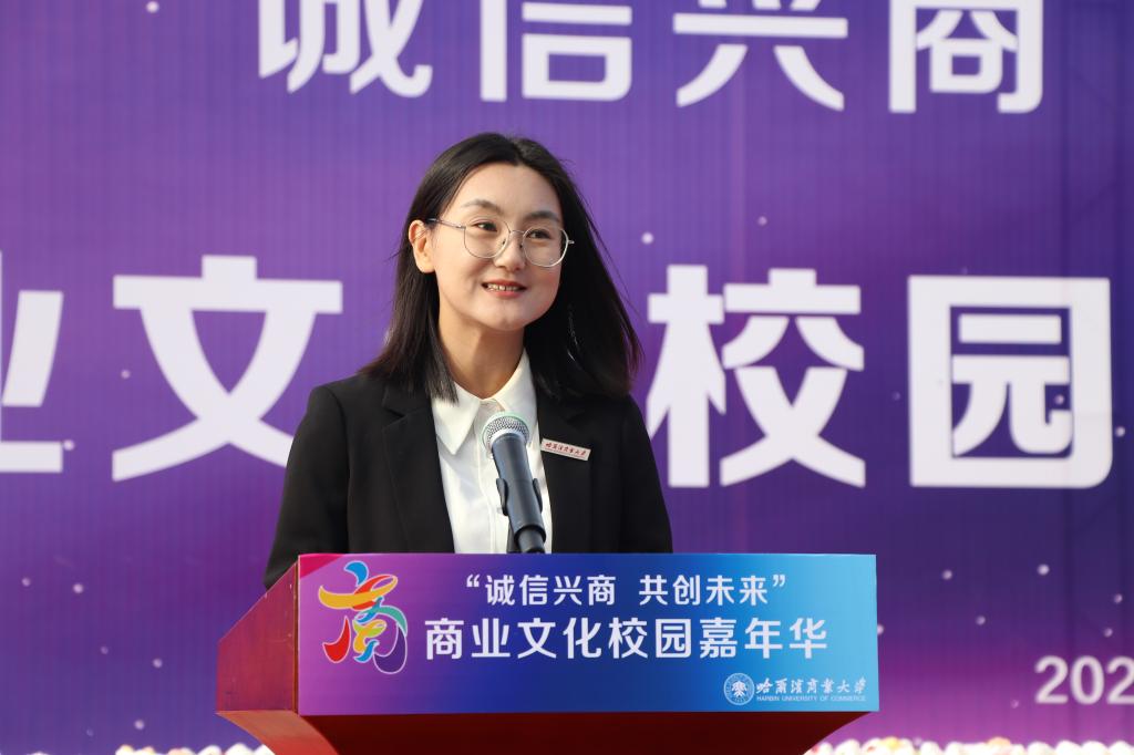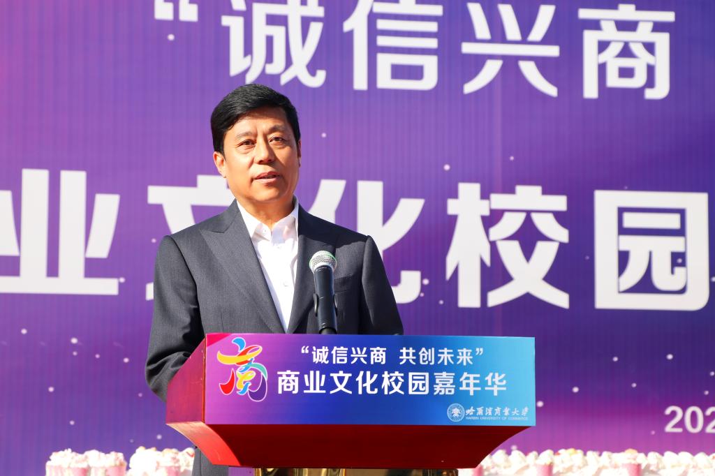 张波在致辞中指出,此次商业文化校园嘉年华活动,主题鲜明,内容丰富,形式新颖,吸引力强,学校师生、社会组织及企业家代表一起集聚互动,打造了商业文化集群效应,营造了诚信兴商浓厚氛围。张波指出,黑龙江省诚信建设促进会将充分发挥桥梁纽带作用,积极与校企建立合作关系,搭建“诚、科、教”“产、学、研”对接服务平台,整合商大人才培养、科研成果优势和企业项目、市场优势,积极组织校企洽谈对接,推动校企合作共赢。为商贸流通企业加强人才队伍建设提供服务支撑,通过签约合作为企业提供信用经济管理专业人才支持,为毕业生提供优先择业创造条件。促进诚信文化、商业文化、企业文化融合发展,深度挖掘诚信文化、商业文化、企业文化内涵,省诚促会进行广泛宣传,充分发挥哈商大在诚信文化建设方面的示范引领作用,大力推广应用哈商大诚信文化研究成果、诚信校园主题景观、育人体系诚信文化元素、诚信文化特色载体、诚信文化师生典型、诚信文化管理制度等典型经验,携手助力诚信龙江建设。