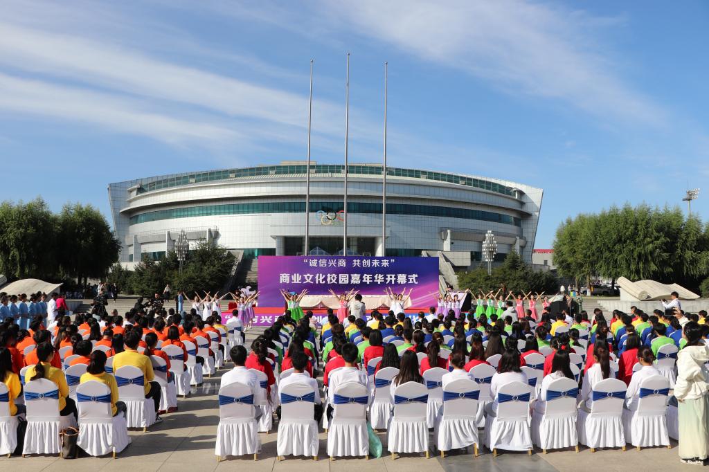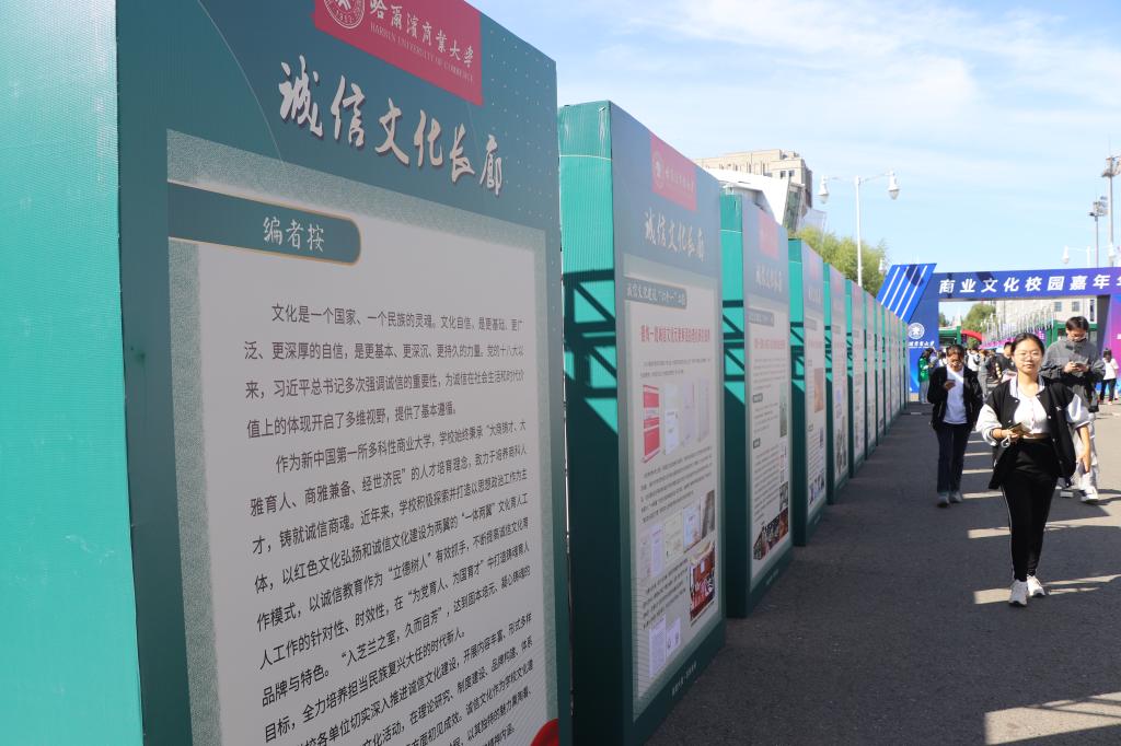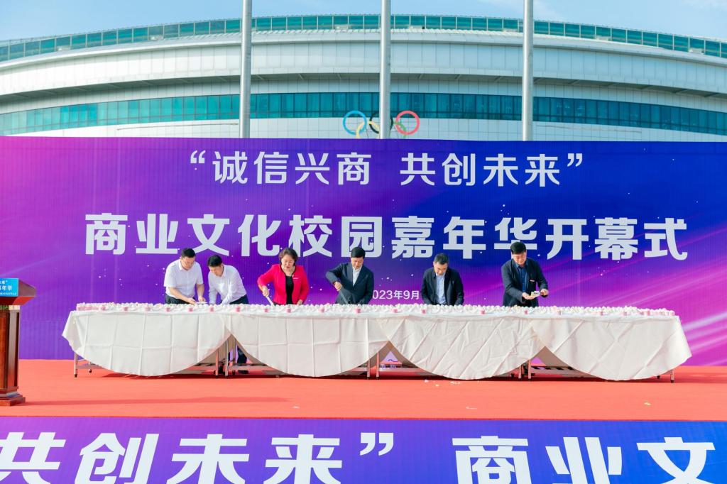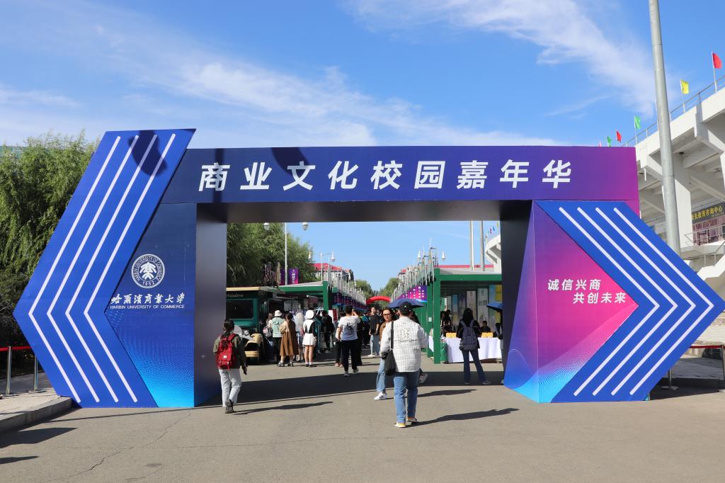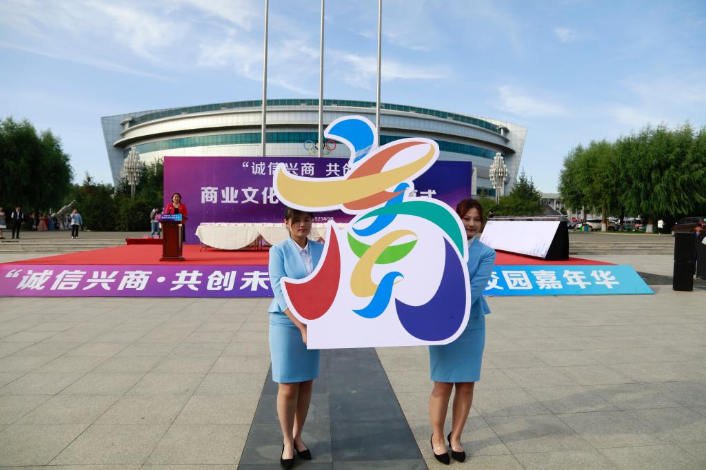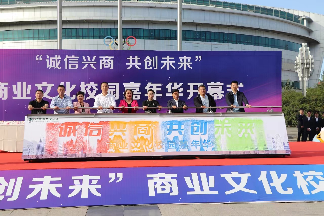 以文聚力,相约金秋;诚信为商,共创未来。9月13日,在省商务厅等多家单位的指导下,以全省“诚信兴商宣传月”活动为契机,由哈尔滨商业大学和黑龙江省诚信建设促进会联合主办的“诚信兴商·共创未来”商业文化校园嘉年华活动在哈尔滨商业大学诚信广场启幕。省商务厅党组成员、副厅长邢颖娜,省委宣传部文明培育处处长耿福强,省直机关工委行业协会商会党建工作部部长秦晓明,省民政厅社会组织服务中心主任孙积家,哈尔滨市松北区委常委、宣传部部长王佳,黑龙江省诚信建设促进会会长张波,省社会保障行业协会联合党委书记刘歆;我校党委书记孙先民,校长郑秋鹛,副校长姜国峰、李景义、王巍、赵大伟出席开幕式。“北大荒”“马迭尔”“世一堂”“秋林格瓦斯”“正阳楼”“老鼎丰”“大羅新”等30余家“龙江老字号”及知名企业相关负责人,我校相关职能部门负责人和师生代表,在哈高校师生代表参加开幕式。郑秋鹛主持开幕式。