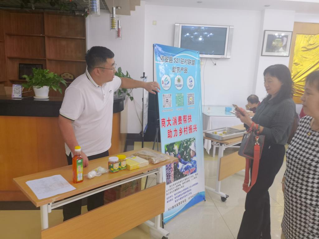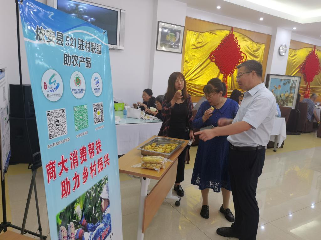 为贯彻落实习近平总书记在主持召开新时代推动东北全面振兴座谈会和视察我省时的重要讲话重要指示精神,以及相关文件精神,在第39个教师节之际,我校依安县福来村驻村工作队于9月11日开展校村合作消费帮扶新模式。在学校党委组织部、工会和后勤管理处的指导下,面向全校教职工举办“商大消费帮扶,助力乡村振兴”活动,在专家公寓二楼教工食堂和B区教工食堂免费试吃鲜食玉米,销售来自依安县新发乡小园种植的花糯玉米、笨榨豆油、咸鸭蛋、四色小米、蜂蜜、土豆干等特色农产品。消费帮扶活动不到一小时,展销农产品全部售罄。
