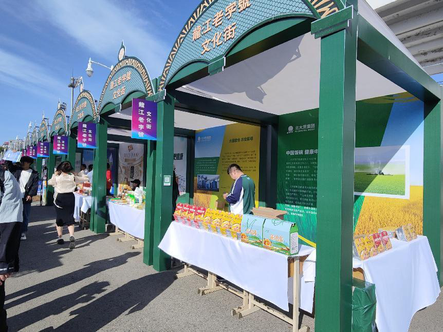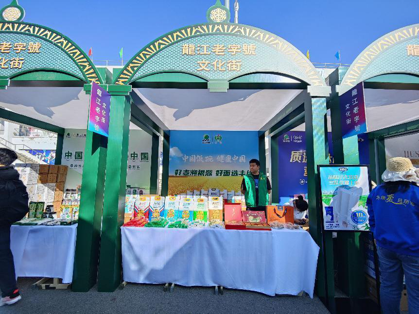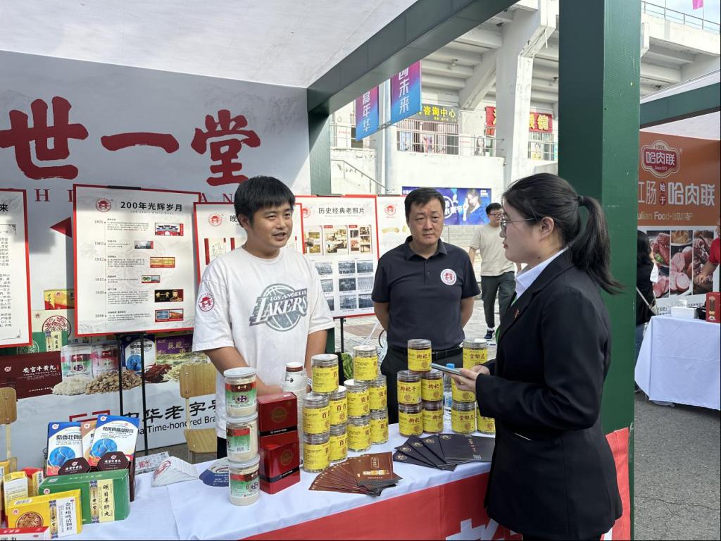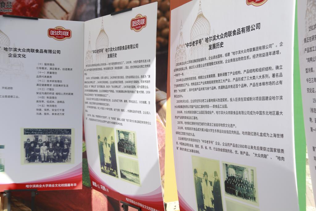 在哈尔滨商业大学商业文化校园嘉年华的六大展区之一的“龙江老字号”文化街上,有“世一堂”“北大荒”“马迭尔”“哈肉联”“秋林格瓦斯”“正阳楼”“老鼎丰”“大羅新”“老厨家”“月亮八珍”“喜丰收”等30余家来自全省的“老字号”企业参展。除了展销商品以外,讲好龙江“老字号”品牌故事也成为了此次嘉年华活动的最大亮点,“老字号”企业专门设置了品牌故事专题展区,一件件实物、一张张展板生动的讲述着辉煌的龙江商业发展史,激励着广大师生建功龙江的使命担当,向两万余名青年学子展示着龙江的独特的文化魅力。