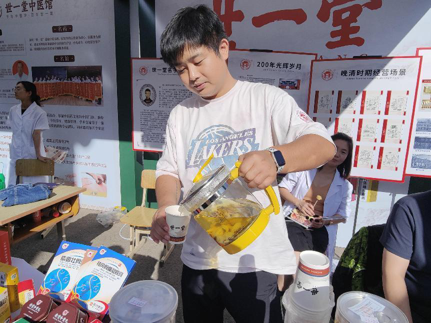 “里有同仁,外有世一”,讲述的是一段药界佳话,其中的“世一”就是“中华老字号”——中华五大堂之北堂哈药集团世一堂制药厂。在“龙江老字号”文化街现场,哈药集团世一堂制药厂工作人员王钰珏向我们介绍了世一堂的发展历程。他表示,在国家战略及中医药文化的积极引领下,“世一堂”始终遵循创始人李星臣先生“配伍医方唯道地,炮制遵古乃精良”的古训制药,精选道地药材、传承精良技艺,不断致力于打造高品质药品,为提升国人健康水平而不懈奋斗!