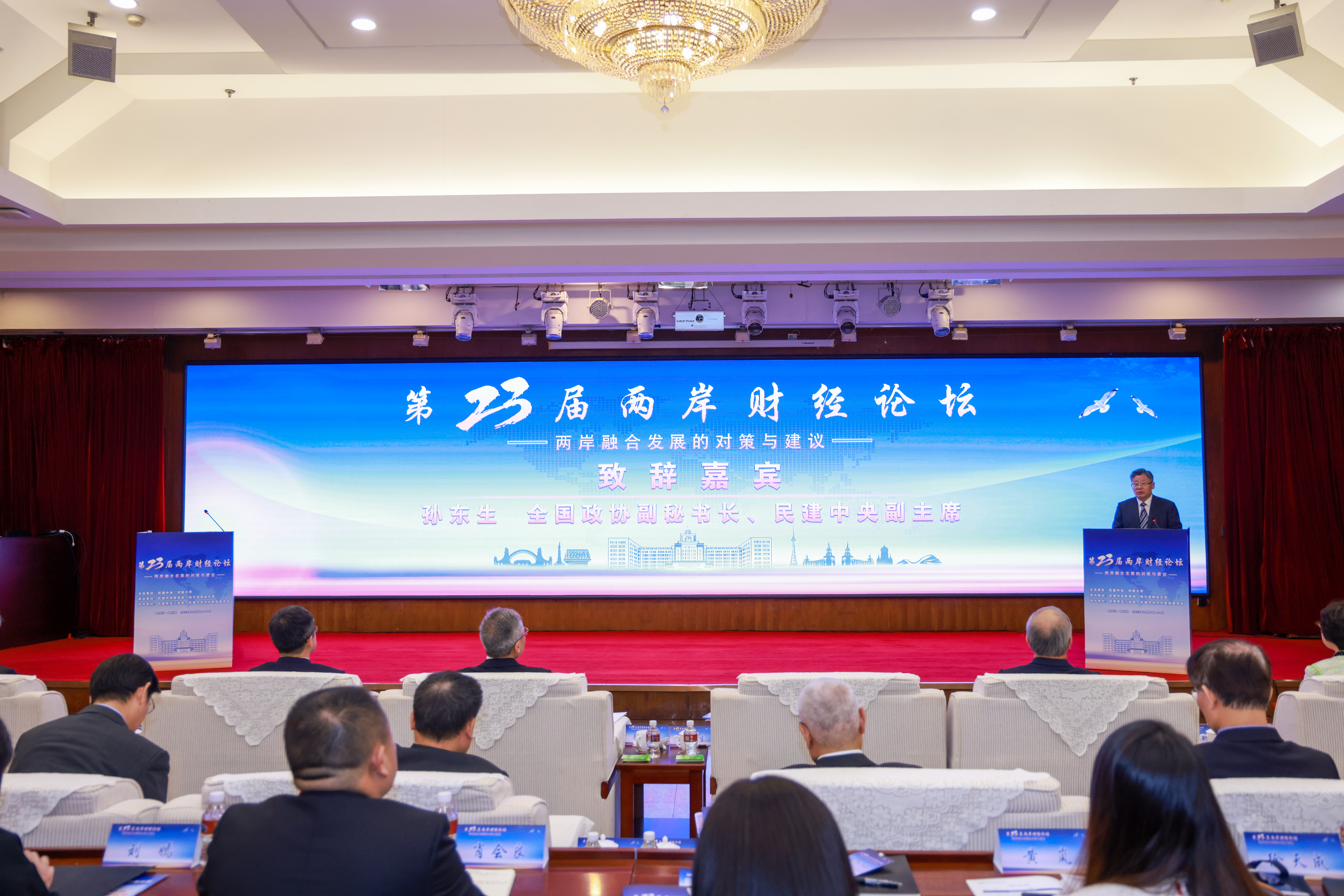 为贯彻落实《中共中央 国务院关于支持福建探索海峡两岸融合发展新路 建设两岸融合发展示范区的意见》(简称《意见》)、研究两岸融合发展之道,10月8日,第23届两岸财经论坛在哈尔滨举办。论坛由民建中央和台湾世新大学联合主办,民建中央联络部和哈尔滨商业大学共同承办,主题为“两岸融合发展的对策与建议”。省委常委、统战部部长,省政协党组副书记徐建国;全国政协副秘书长、民建中央副主席孙东生出席论坛。全国政协委员、民建中央联络部部长汪阳主持论坛。