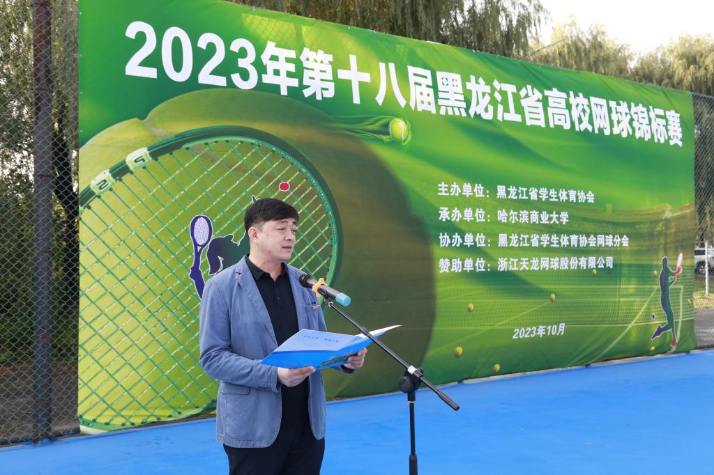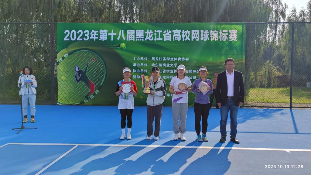 为助力龙江学校体育事业高质量发展,打造高水平网球赛事,10月12日-15日,由黑龙江省学生体育协会主办,黑龙江省学生体育协会网球分会协办,哈尔滨商业大学承办的第18届黑龙江省高校网球锦标赛在哈尔滨商业大学网球场举办。本届比赛共有来自省内23所高校的领队、教练员、运动员共计411人同台竞技,创历年省高校网球锦标赛最大规模,设领导组双打、教工混合团体,学生甲组、乙组(男、女)团体、单打、双打等项目。