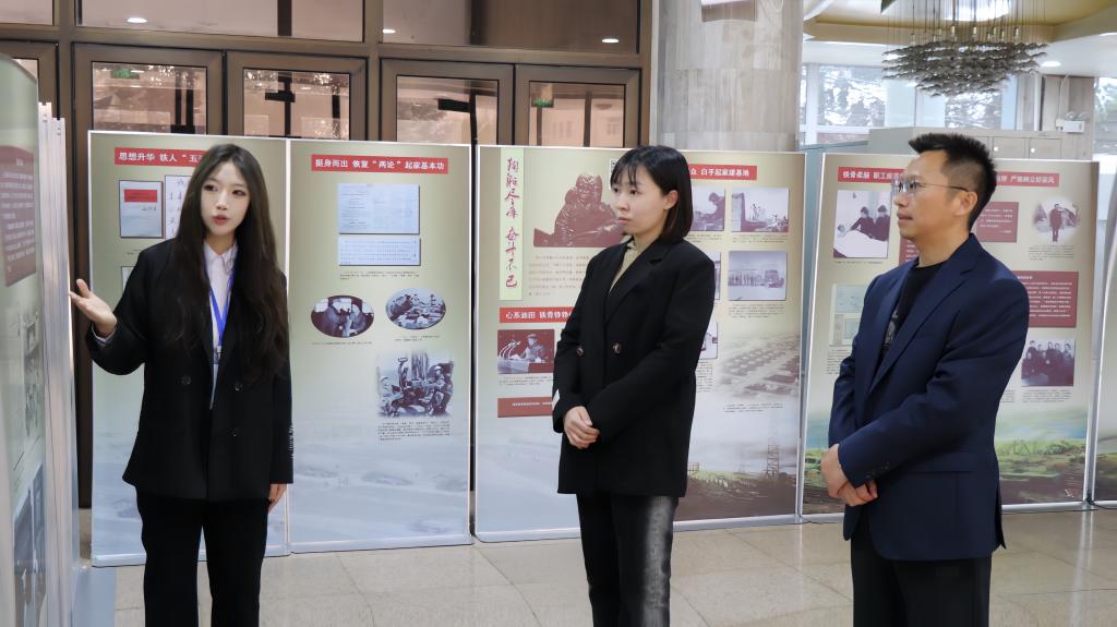 今年是铁人王进喜诞辰100周年,大庆精神(铁人精神)是第一批纳入中国共产党人精神谱系的伟大精神,是对爱国、创业、求实、奉献精神的深刻诠释,是历久弥新、永不褪色的宝贵精神财富。自11月6日开展以来,吸引众多师生前来观展,师生们在一块块展板前或轻声细读,或静默沉思,缅怀过往奋斗路,眺望前方新征程。