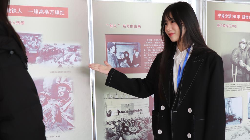 十分荣幸能够通过学校的遴选担任本次展览的讲解工作,我印象中的铁人,是在油田井喷时的搅拌泥浆,是在风餐露宿中砸冰取水,是在冰天雪地里的人拉肩扛……追寻铁人的奋斗历程,是对前辈们最大的致敬和最好的纪念。在未来的学习生活中,我要像“铁人”一样,接续奋斗,永久奋斗,在中国式现代化新征程上肩负起青年人的使命与担当,努力成为堪当民族复兴重任的时代新人。