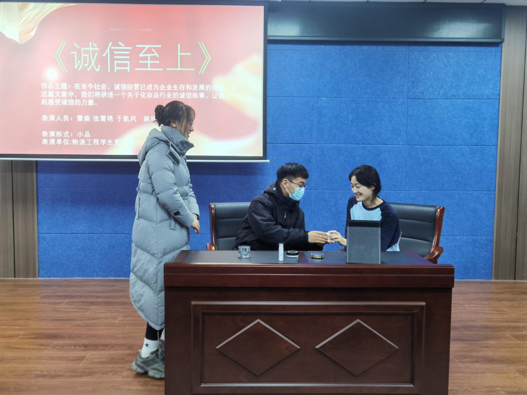 管理学院开展了“廉洁润初心 清风沐桃李”主题征文、“诗画扬清风 笔墨颂廉韵”书画作品、“笔墨言志 巧手传廉”文创作品等征集展示活动,同学们以多样的作品形式,表达和描述心中坚定的“廉洁之风”。同时,学院还精心设计,组织开展了“树诚信之风 创文明社会”文艺作品展演活动,包括小品《巧诈不如拙诚 唯诚可得人心》《躺平式干部》《诚信至上》、舞台剧《希望之光》、相声《诚信是金》、诗朗诵《烈烈清风》等。同学们通过多姿多彩的丰富形式,将多种艺术表现形式融入廉洁文化教育,更好地发挥廉洁文化育人作用,使廉洁文化深入师生心中。