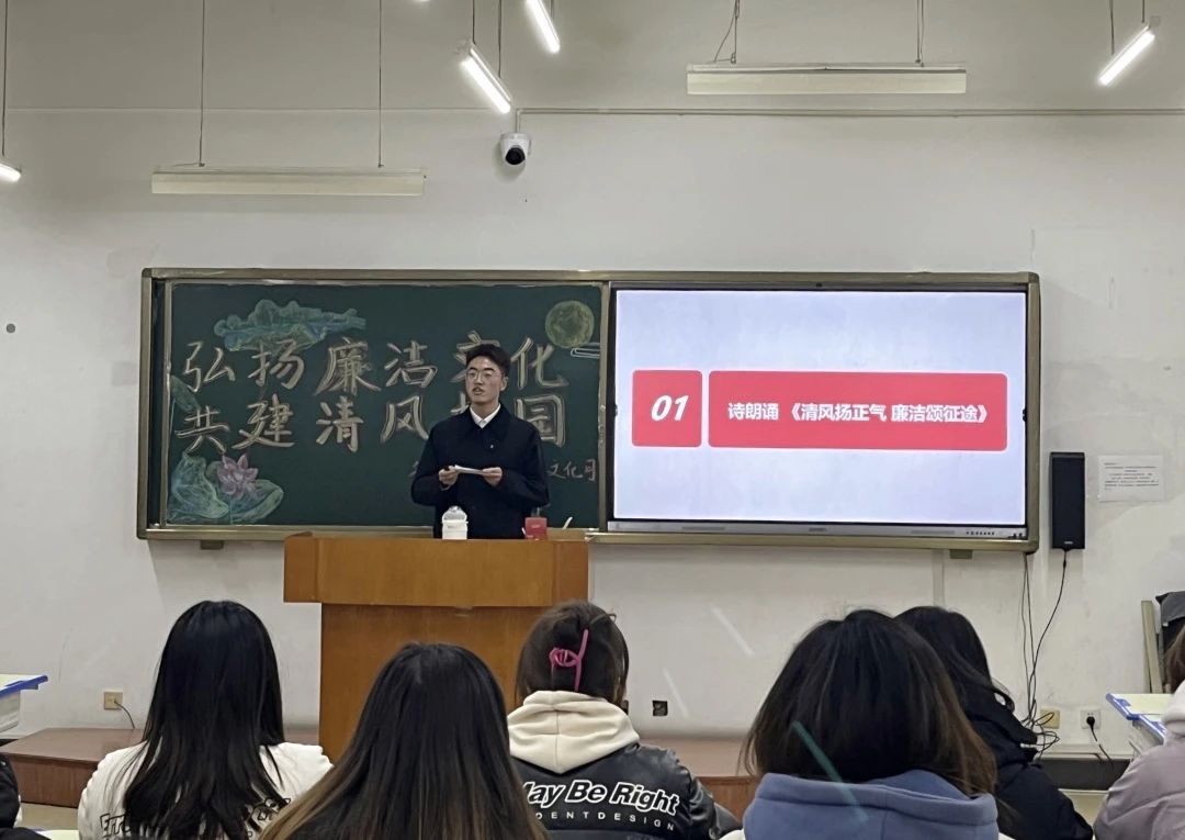 外语学院开展了以“弘扬廉洁文化 共建清风校园”为主题的系列活动。学院将廉洁文化融入主题教育,通过开展主题党日活动、开展警示教育、观看廉洁教育宣传片、重温入党誓词等形式,在青年学生中广泛进行理想信念教育、道德品质教育、传统美德教育、法治意识教育等。学院将廉洁文化融入校园活动,积极创作廉洁文化艺术作品,精心设计编排小品《走过场》,以学生喜闻乐见的形式,让廉洁文化教育更具感染力。学院深挖廉洁文化资源,在拓展教育功能、丰富传播手段上持续发力,推动廉洁文化建设实起来、强起来,用心讲好新时代廉洁故事,多措并举加强学生廉洁教育。