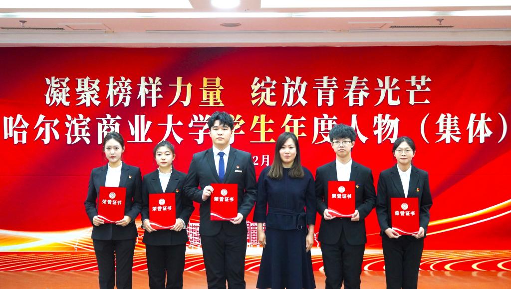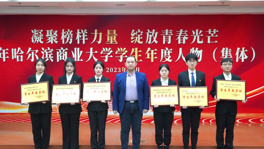 用创新创意促进专业发展的设计艺术学院产品创意工作室;食品安全的传播者——食品工程学院食品安全协会;逐梦未来、传播商大文化的哈小商艺玩文创工作室;用初心、真心、诚心、助力家庭经济困难学子追梦、圆梦的经济学院勤工助学中心;同心协力、共同进步的英才学院13公寓212寝室;习近平新时代中国特色社会主义思想的传播者和践行者——哈商大“青马工程”学生骨干实践团。