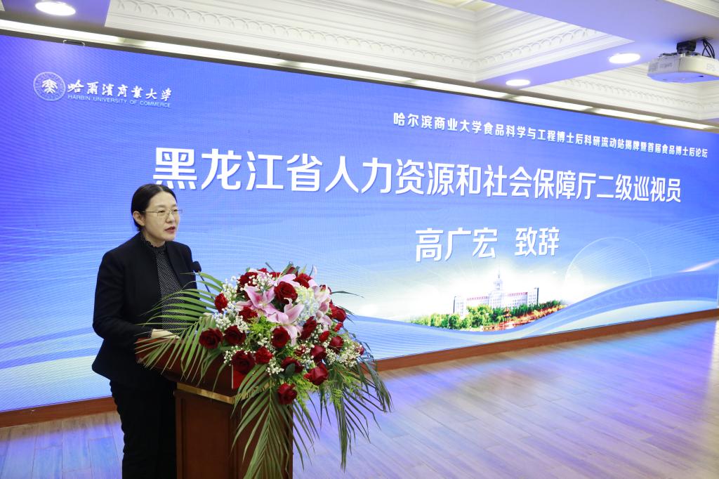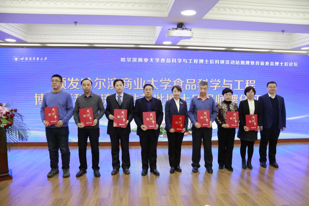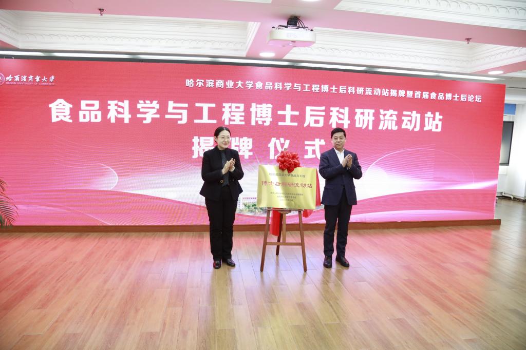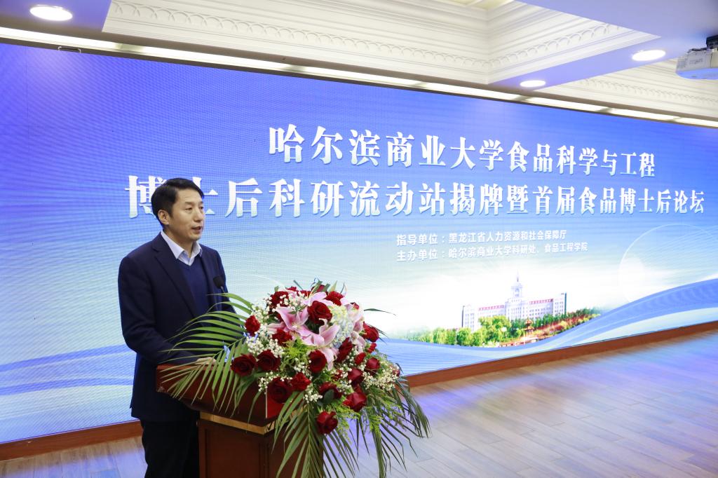12月22日,由黑龙江省人力资源和社会保障厅指导,哈尔滨商业大学科研处和食品工程学院主办的“哈尔滨商业大学食品科学与工程博士后科研流动站揭牌仪式暨首届食品博士后论坛”在我校北校区举行。博士后科研流动站是吸引集聚青年科技人才、培养创新人才、促进产才融合的有效载体,此次食品科学与工程流动站的设立,对我省食品产业高端人才平台建设具有引领示范作用,标志着哈商大在科研和高层次人才培养平台建设方面再次取得了重要突破。黑龙江省人力资源和社会保障厅二级巡视员高广宏、黑龙江省人力资源和社会保障厅专业技术人员管理处副处长李兵、中国农业大学程永强教授、上海理工大学艾连中教授、南京财经大学王立峰教授,我校党委书记孙先民、副校长李景义、副校长赵大伟,以及学校相关职能部门、食品工程学院负责人和师生代表等参加活动。李景义主持揭牌仪式。