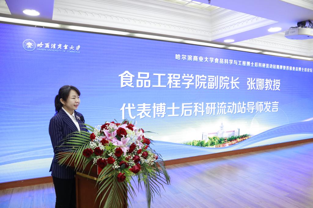 食品工程学院副院长张娜教授代表食品科学与工程博士后科研流动站导师发言。