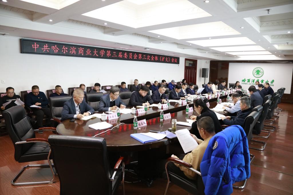 1月3日,学校在行政楼三楼会议室召开中共哈尔滨商业大学第三届委员会第三次全体(扩大)会议。校党委书记孙先民,校党委副书记田成义,副校长姜国峰、李景义、王巍、赵大伟,纪委书记卢伯松出席会议;学校党委委员,各基层党委(党总支)书记参加会议。孙先民主持会议。