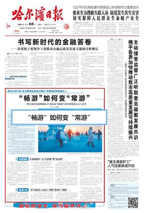 【哈尔滨日报】“畅游”如何变“常游”|哈尔滨培育超级城市IP构筑冰雪旅游全球目的地的启示与思考
