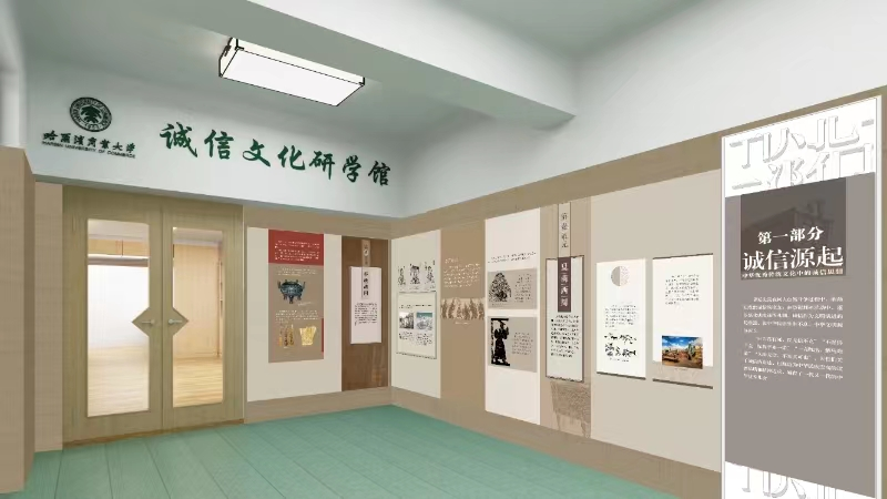 哈尔滨商业大学诚信文化研学馆位于学校东区B03栋3楼左侧,是由我校自主建设的全省高校首家以征集、收藏、展示、研究诚信文化为主题的公益性研学馆,馆内集中展示了我国诚信思想发展历程,历代有关诚信的故事,建国以来特别是改革开放四十多年来全国诚实守信道德模范的先进事迹,我国社会信用体系建设的重要举措,以及学校诚信文化建设成果等。展馆设有“诚信中国”专题展区、诚信廉洁文创研学体验区、诚信文化主题工作室等区域,该馆同时也是黑龙江省营商环境建设与诚信文化研究学术交流基地的常设办公地。