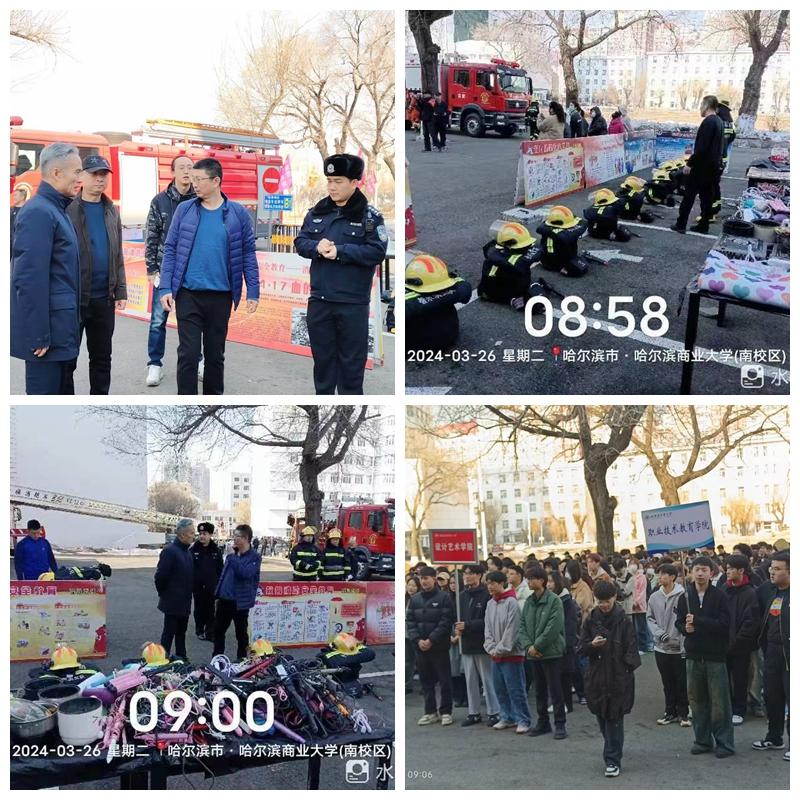 为进一步加强师生消防安全意识,提高学生消防安全应急避险能力,确保全校师生能在紧急情况下快速反应、迅速行动和科学自救,3月26日上午,保卫处联合道里区消防救援大队、共乐街派出所,在我校南校区设计艺术学院楼开展消防应急疏散逃生演练。药学院、设计艺术学院、职业技术教育学院、后勤管理处、学生工作部、学生食堂等单位近500名师生员工参加演练。演练前,保卫处按照上级文件精神,结合学校实际,提前制定演练方案,并与各相关部门进行彩排。