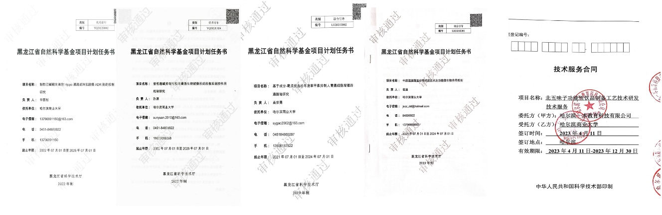 寒地道地药材的药效物质基础及质量标准提升研究团队结合龙江寒地道地药材资源,从“多成分、多靶点”整体表达化学成分群及与此相关的药效生物信息,通过构建“固有成分-代谢产物-药效检识”动态整合模型,结合反向溯源分析发现寒地道地药材质量标志物,形成以“质量-代谢-药效”关联模式为关键技术的质控体系,完成了菟丝子、灵芝、火麻仁、五味子、卷柏等道地药材的质量评价研究,指导制订寒地道地药材的行业标准,提升寒地道地药材品质。同时,围绕寒地高发性疾病防治结合,解决寒地道地药材相关产品的开发利用、生产工艺优化等制约区域药物特色健康产品产业化的关键技术难题,开发区域特色健康产品。