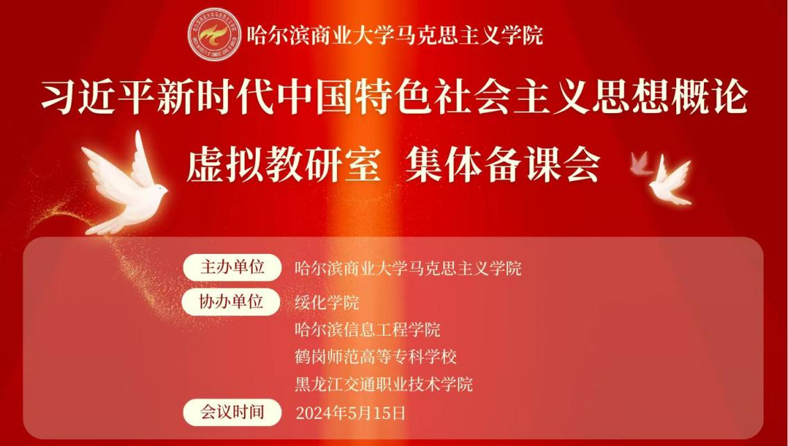习近平总书记对学校思政课建设作出重要指示强调,“要始终坚持马克思主义指导地位,以中国特色社会主义取得的举世瞩目成就为内容支撑,以中华优秀传统文化、革命文化和社会主义先进文化为力量根基,把道理讲深讲透讲活,守正创新推动思政课建设内涵式发展,不断提高思政课的针对性和吸引力。”为全面推进实施“立德树人质量提升行动”,深入拓展“习近平新时代中国特色社会主义思想概论课”广度深度,探索新型基层教学组织形式,按照黑龙江省教育厅相关通知要求,近日,由哈尔滨商业大学马克思主义学院牵头,绥化学院、哈尔滨信息工程学院、鹤岗师范高等专科学校、黑龙江交通职业技术学院等4所院校“新思想概论”课教师协同参与的新思想概论课虚拟教研室第一次集体备课活动举行,活动采用线上与线下相结合方式进行。