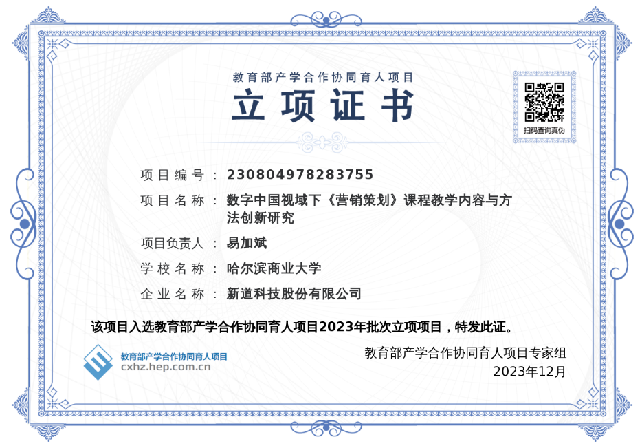 商务学院以《黑龙江省“十四五”数字经济发展规划》为目标方向,以国家一流本科专业、一流本科课程建设为依托,打造“新商科教育+数字技术+数智管理人才”动态联动新范式,扎实推进高质量数智管理人才培养改革。2021年,工商管理和市场营销专业成为国家一流本科建设专业。2024年,工商管理和市场营销专业所在档次均为B++,获4星级评定。