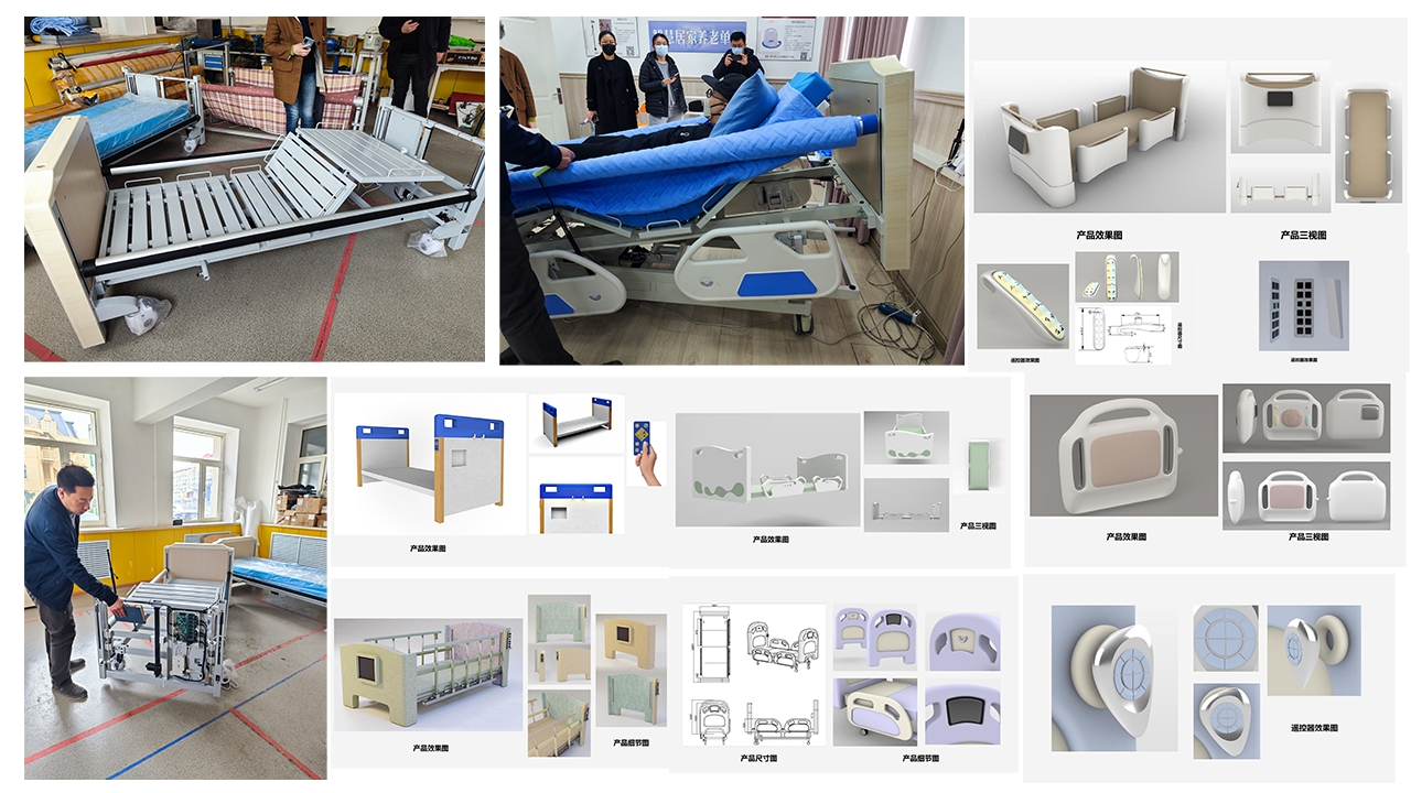 与融智医康(哈尔滨)科技有限责任公司合作,完成护理床、遥控器外观设计,学生设计的产品落地实物。