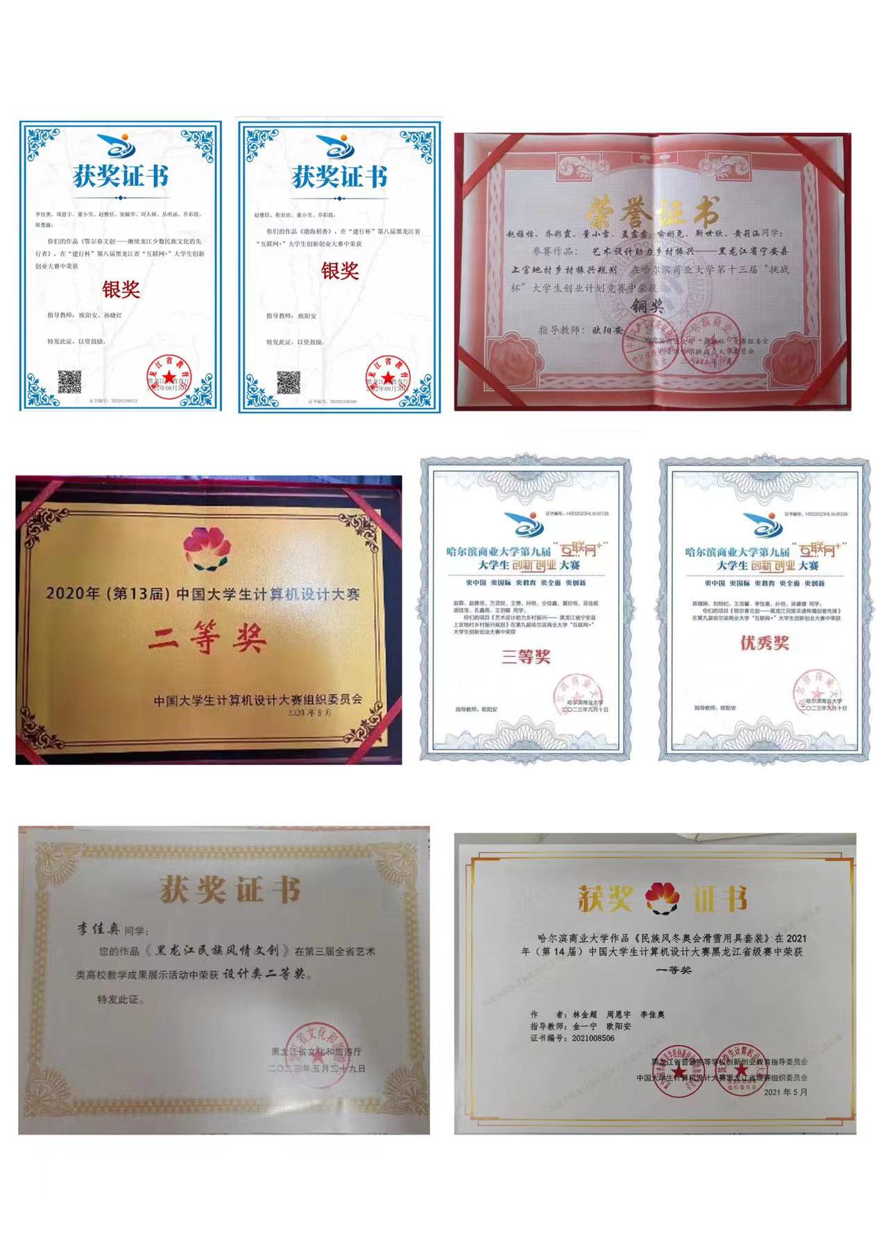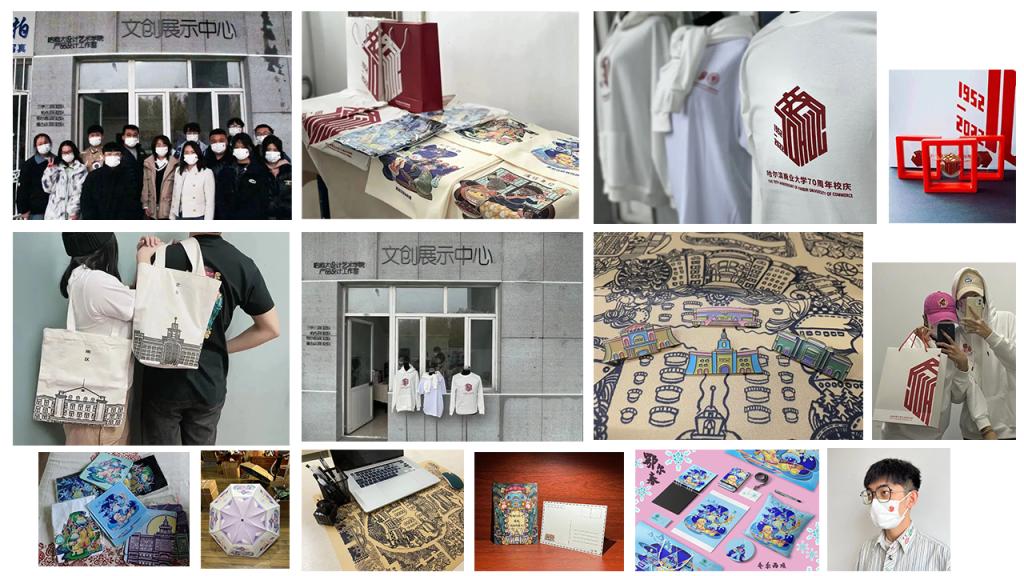 经过不断探索,产品设计专业通过建立工作室项目,不断驱动教学模式创新,取得了较为显著的教育教学成效。工作室教学模式坚持以学生为主,在工作室指导老师的指导下以项目式驱动教学为主要授课模式,以企业项目和赛事为主要训练课程课题,激发学生的创新创业意识,着重培养学生的实践动手能力。同时,增加企业导师讲授和点评环节,企业导师通过线上指导教学,在课程考核答辩验收环节,邀请企业设计人员参与答辩点评。在此过程中,由于有企业设计师的参与互动,让学生更加了解行业发展状态、技术革新以及未来走向,将难以理解消化的理论知识应用于实际的产品创作中,加深学生对课程的认识与理解,强化学生创新思维和团队合作能力的培养,以设计项目带动专业教学,进一步提升了教师教、学生学的积极性,取得良好教育教学效果。产品设计专业共组建了“三亭三团队”“松尚团队”“鄂尔春团队”“撞击点团队”“新生代团队”等五个团队,围绕哈尔滨商业大学商业文化馆货币藏品以及校园标志性建筑、龙江冰雪文化、少数民族文化等元素,结合课程不断探索进行创意产品设计,原创产品深受大众喜爱,展现了商大学子独特的浪漫情怀。“三亭三团队”曾代表学校参加黑龙江省首届东北亚博览会,取得了优异的成绩。截至目前,产品设计工作室指导学生参加中国大学生计算机设计大赛,获得国赛二等奖、省赛一等奖;参加黑龙江省“互联网+”大学生创新创业大赛,获得银奖;参加全省艺术类高校教学成果展示活动,获得设计类二等奖。