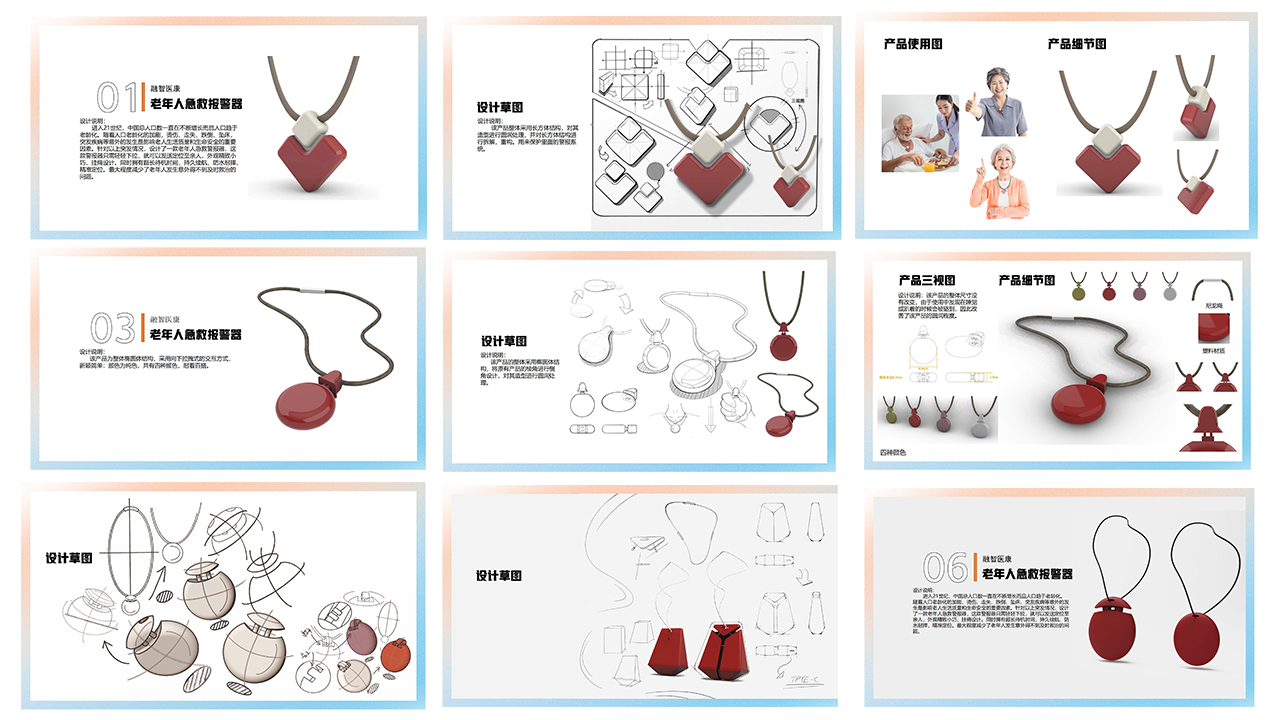 与融智医康(哈尔滨)科技有限责任公司合作,完成老年人急救项链外观设计,学生设计的产品落地实物。