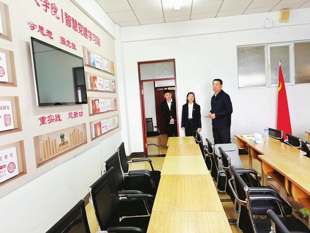 会前,赵广一行实地走访了马克思主义学院各教研室、党建之家和资料室等地,深入调研了解学院党建引领、日常教学、科研工作等相关情况。