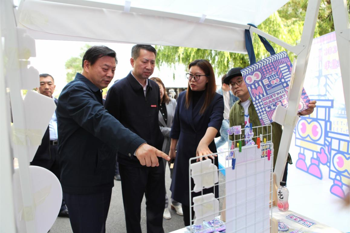 近日,设计艺术学院以“美育引领、创新无限”为主题的2024届毕业设计优秀作品展及艺术创意市集活动在南校区拉开帷幕。学校领导莅临参观指导。