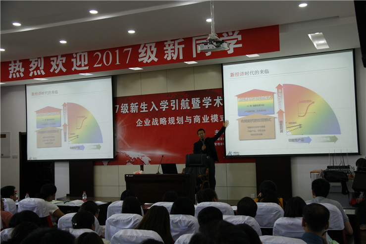 9月2日,受创新创业学院院长宋晓洪教授的邀请,北大纵横管理咨询集团副总裁、北京吾祺纵横管理咨询有限公司董事长宝山先生在南校区主楼408学术报告厅为MBA、MPA师生及校友做了一场题为《战略规划与商业模式创新》的精彩讲座, 讲座由院长宋晓洪教授主持。