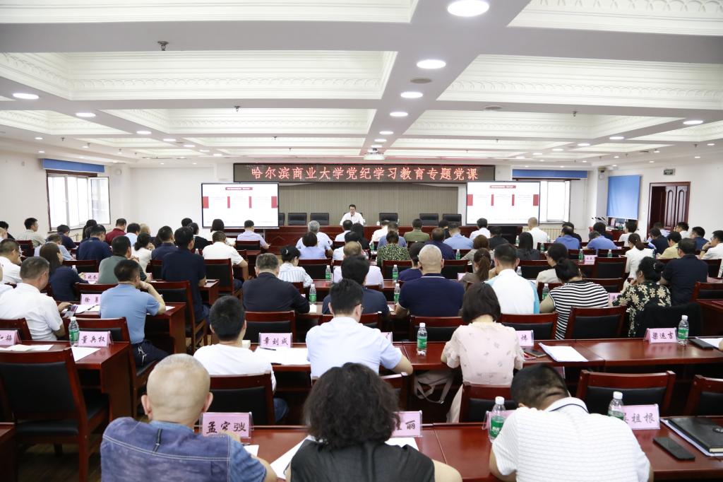 赵广书记聚焦“推进党纪学习教育”这一主题,围绕在坚持马克思主义“两个结合”中把握新时代党的纪律建设的历史逻辑、新时代党的纪律建设的理论逻辑、新时代推进党的纪律建设的实践逻辑,从历史逻辑、理论逻辑和实践逻辑三个层次,论述了开展党纪学习教育的必然性、重要性,分条缕析、鞭辟入里阐明了“以自我革命答好党的纪律建设‘时代之问’”。赵广在讲授中引经据典,讲学理逻辑严谨、层次清晰,讲道理深入浅出、理实并重,其中引用了大量典型案件,起到了用身边事警示身边人的震慑作用,对学校扎实开展党纪学习教育具有指导作用。