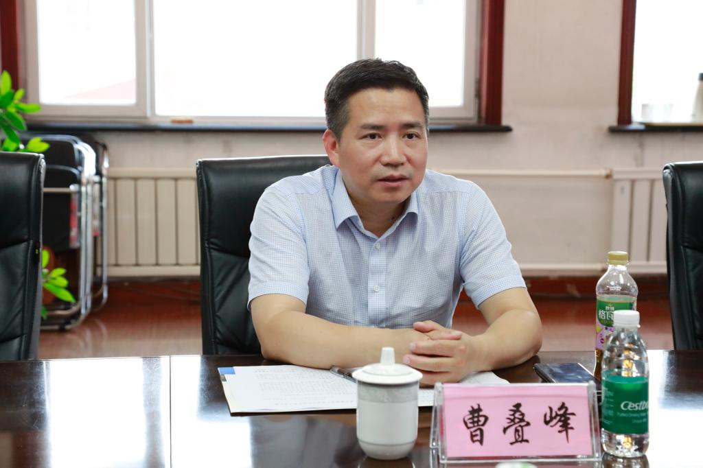 在调研座谈会前,赵广会见曹叠峰一行,并介绍学校办学情况。