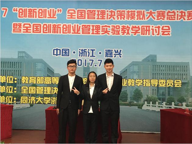 2017年“创新创业”全国管理决策模拟大赛全国总决赛于7月23-24日在同济大学浙江学院举行。我校由2014级审计专业的肖雅文、2014级生物工程专业的高帅、2016级生物工程专业的孟凡旭同学组成的代表队获得全国总决赛特等奖,打破了我校一直由经管专业学生参加的管理决策大赛的惯例,教学实验设备管理中心副主任章刘成、管理学院杨维芝获优秀指导教师称号。