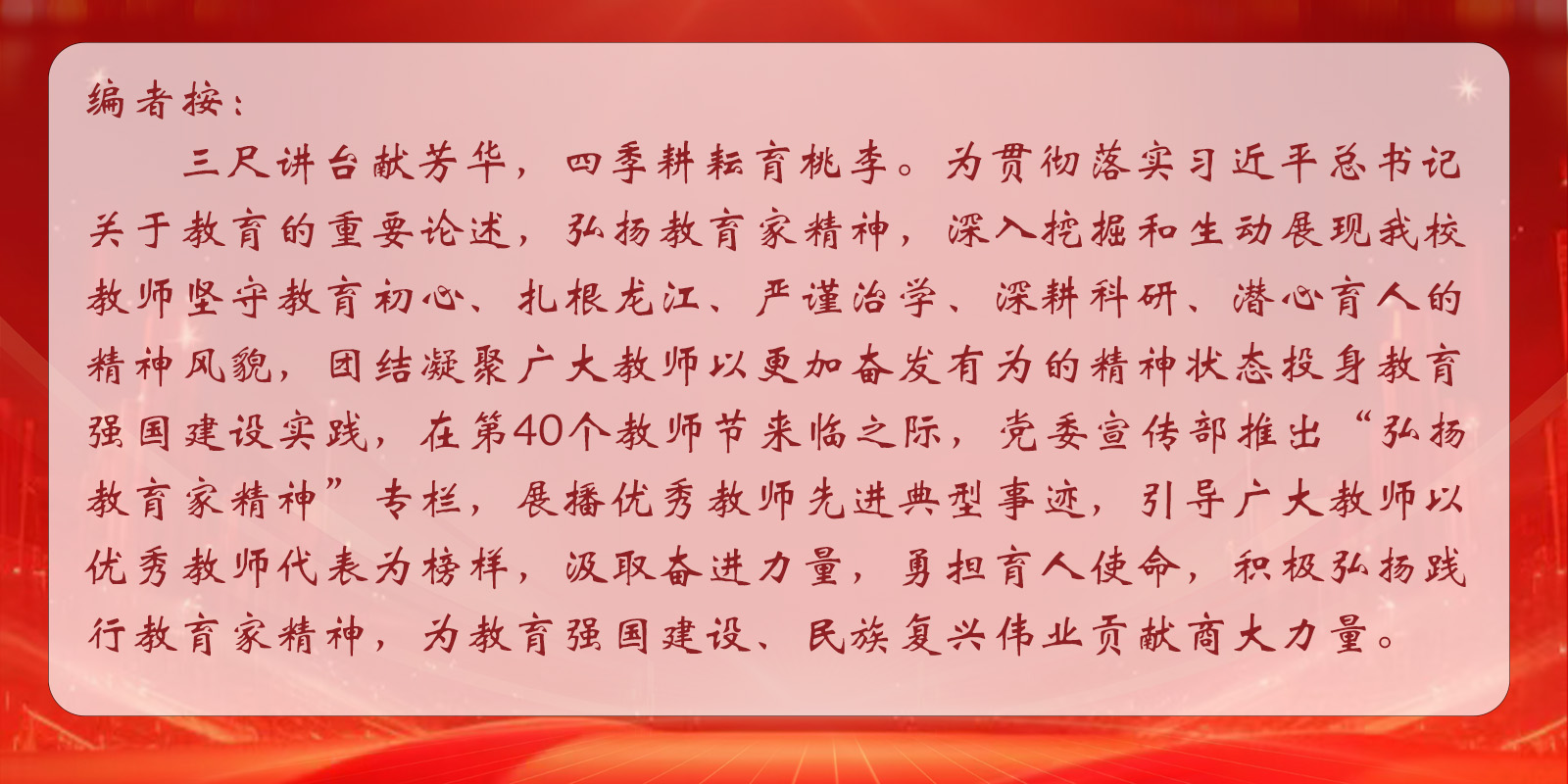 “此地生,此地长,此心安处是吾乡。”汲晨锋求学于哈商大,施教于哈商大,他将人生中最美好的青春岁月留在了哈尔滨商业大学和这片生养他的龙江沃土。