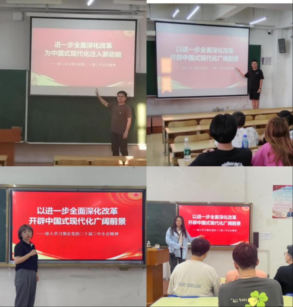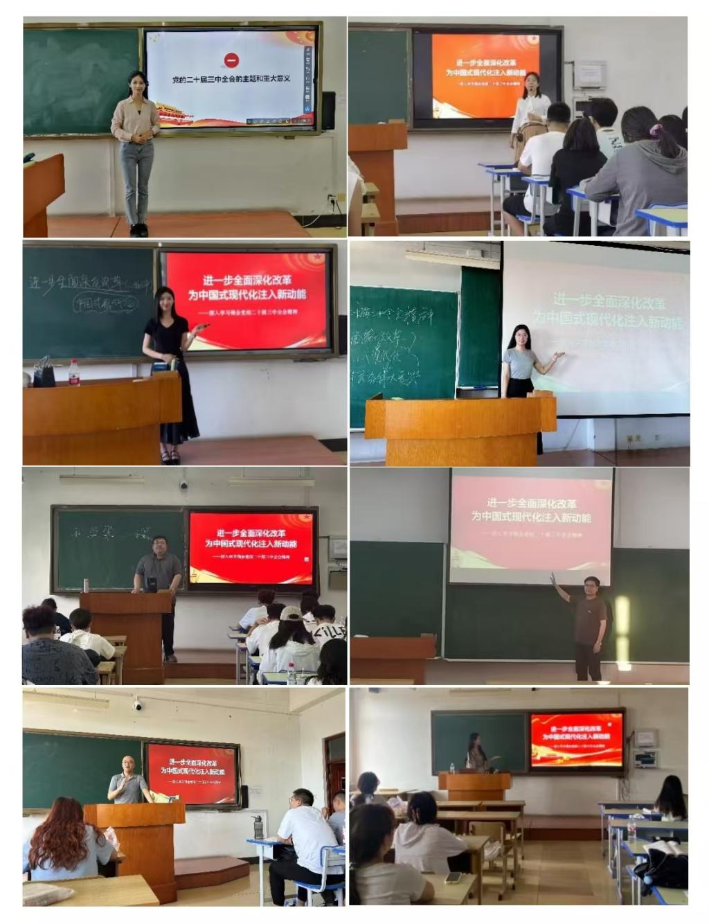 学院组织教师集体备课,以《中国共产党第二十届中央委员会第三次全体会议公报》《中共中央关于进一步全面深化改革、推进中国式现代化的决定》为重点,深入学习党的二十届三中全会的重大意义、指导思想、总体思路、重大原则和系统部署,深刻理解习近平总书记关于全面深化改革的一系列新思想、新观点、新论断。在此基础上,统一授课教案和课件,结合各门课程具体内容,将会议精神全面融入课堂教学。