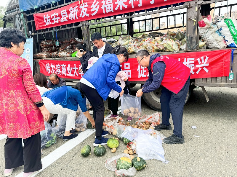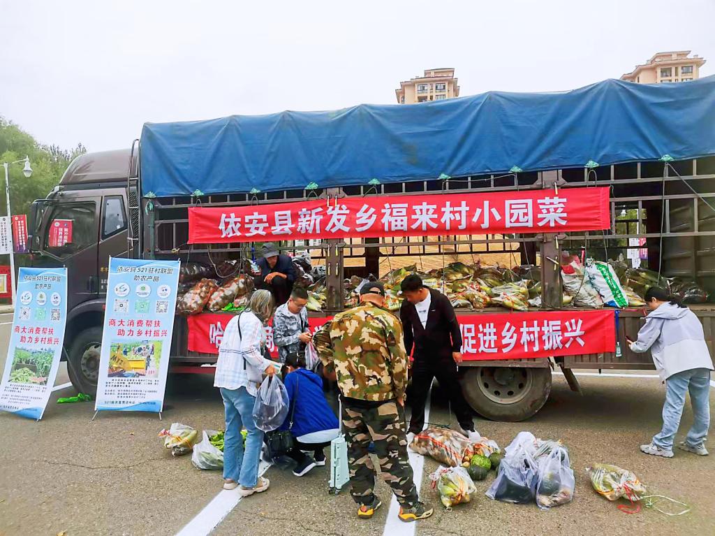 9月4日,在第40个教师节即将来临之际,在校工会和后勤管理处的关心指导下,驻村工作队面向全校教职工开展“商大消费帮扶,助力乡村振兴”活动。在行政楼门前广场,销售来自依安县新发乡福来村村民“庭院经济+订单农业”种植的小园鲜食玉米、窝瓜、土豆、辣椒和茄子等特色农产品,受到广大师生的踊跃采购。