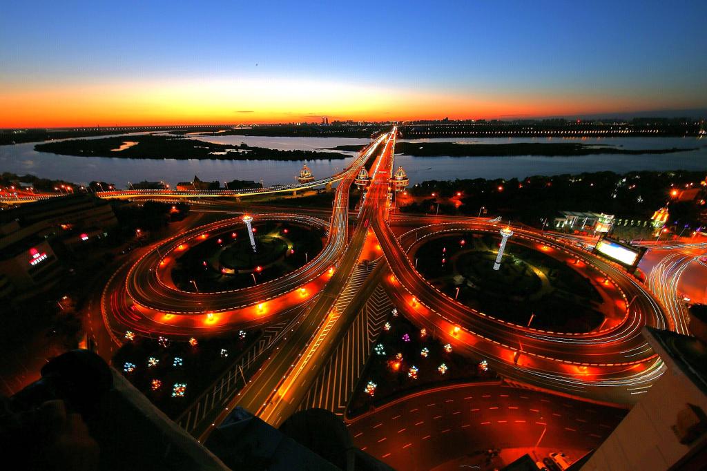谭士元摄影作品《夜幕下的松花江公路大桥》