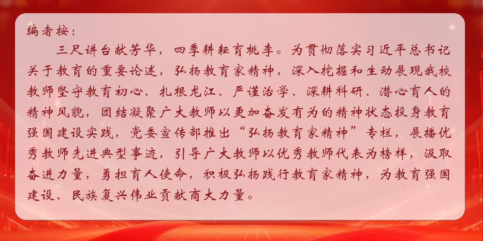 她还通过开展政校企合作,为企业开展财税、金融等咨询活动,为服务新区、振兴龙江发挥高校教师的力量。她在会计教学岗位上培养本硕博高素质人才近万人,为社会会计人员继续教育、考取资格证书等培训20余万人,义务为企业开展会计诊断,解决会计财务问题600余件。她带领的团队获批省教科文卫体工会授予的劳模和工匠创新工作室。
