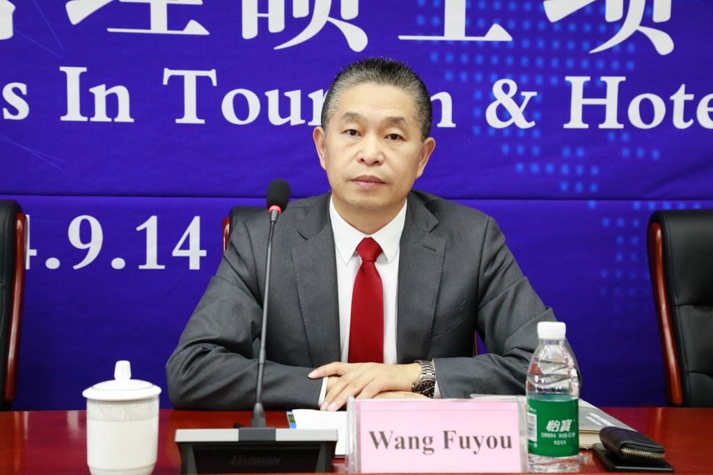 9月14日下午,由商务部主办、哈尔滨商业大学承办的“2024级旅游与酒店管理专业硕士研究生”援外项目开学典礼在我校行政楼612会议室举行。我校副校长王福友,省商务厅对外投资和经济合作处处长都书峰、二级调研员杨家滨,我校研究生学院院长赵春雨、旅游烹饪学院院长孙静,以及来自11个国家的43名学生参加开学典礼。开学典礼由国际交流合作处处长金向阳主持。
