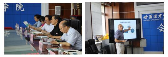副校长程伟教授首先讲话。他简单介绍学校的基本情况之后,从科技进步对教育影响的角度出发,指出随着云计算、大数据、移动互联等新一代互联网技术的发展,高等教育教学模式也发生了翻天覆地的变化,从平台建设、课程资源建设、学习中心建设、终端App,到教学内容、模式、方式、方法都需面向这种新形式重新架构并完善,希望通过中心的成立和建设能够进一步加强移动云教学模式的推广和大数据分析应用,加快推进信息技术与教育教学融合创新发展,推进线上线下结合的课程共享与应用。北京蓝墨科技有限公司董事长兼CEO靳新先生介绍了介绍蓝墨科技公司的整体运营发展情况做出介绍,现在使用蓝墨教学平台的教师已经有8万多人,涉及的学生已经有280万人,在哈商大成立全国商业本科院校移动云教学大数据研究中心,是依赖于哈商大的优秀教育资源、良好的社会声誉以及在商科院校的重大影响,使得移动云技术与高等教育能够更好的结合,促进教学手段与教学方式改变,从而推进人才培养模式的改变,培养高质量商科人才。靳新董事长并就移动云教学进行了精彩展示。