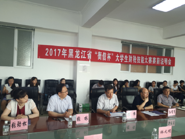 会计学院于6月27日举行了“2017年黑龙江省‘衡信杯’大学生财税技能竞赛赛项启动仪式”。副校长程伟教授及教务处长孙智慧教授亲临启动仪式,会计学院领导班子、部分教师及来自20余所高校的教师共同参与了此次启动仪式。
