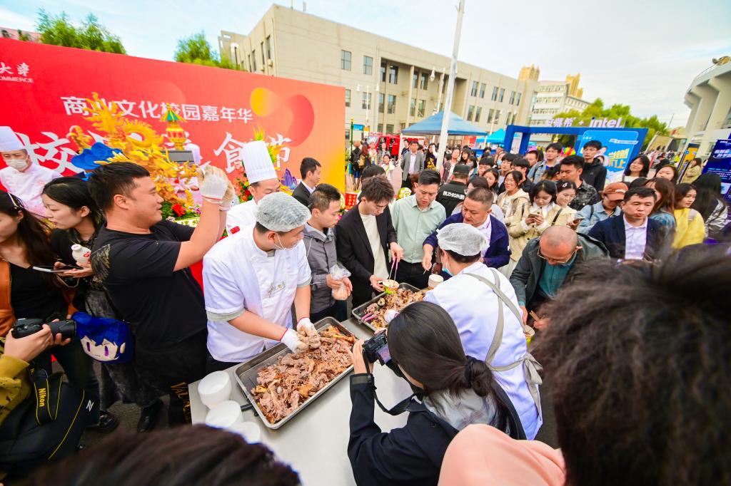 商业文化展区由哈尔滨商业大学诚信文化建设成果展、哈尔滨商业票证馆展览、“龙江老字号”品牌故事展三个部分组成。一件件实物、一张张展板生动地讲述着辉煌的龙江商业发展史,深入阐释着诚信文化的丰富内容和深刻内涵,全面展示着哈尔滨商业大学诚信文化建设成果。在“老字号”文化街,“北大荒”“完达山”“世一堂”“马迭尔”“哈肉联”“秋林格瓦斯”“正阳楼”“老鼎丰”“老厨家”“喜丰收”等20家来自全省的“老字号”企业参展,通过展销商品和讲述品牌故事,让师生们深刻感受到龙江商业文化的厚重底蕴和辉煌成就。创新创意展区更是本次嘉年华的一大亮点。展区集中展示了学校近年来在创新创意方面相关科学研究、项目攻关取得的成果,包括师生科研成果、创新创业项目等,还展示了老昌號冰花瓷、雪花雕、雨小屋花艺等多个非遗项目等。嘉年华期间还举办了丰富多彩的文艺演出和美食文化活动。学生们在舞台上展示了歌曲、舞蹈等表演,展现了商大学子的青春活力和多才多艺。校园美食文化节则让师生们品尝到了各地特色美食,享受了一场味觉上的盛宴。