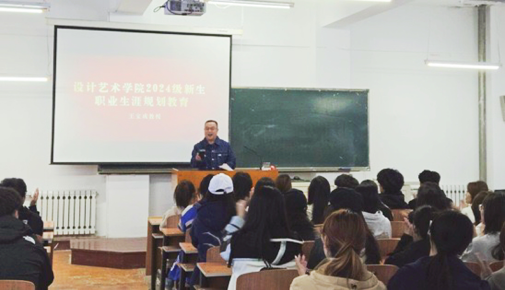 设计艺术学院关工委邀请王宝成教授,为2024级新生开展“职业生涯规划教育”专题讲座。王宝成教授在讲座中详细阐述了艺术类专业发展历程与专业特点,对艺术类专业的核心课程逐一作了介绍,对相关产业未来的发展趋势进行了系统分析。他鼓励新同学要尽快确立大学的学习目标和四年的学业生涯规划,脚踏实地抓好每一天的学习和生活,努力学习专业知识,积极参加社会实践,时刻为确立的目标做好准备。他勉励学生要勇于探索、敢于创新、善于尝试,努力成为具有创新精神和实践能力的高素质人才。