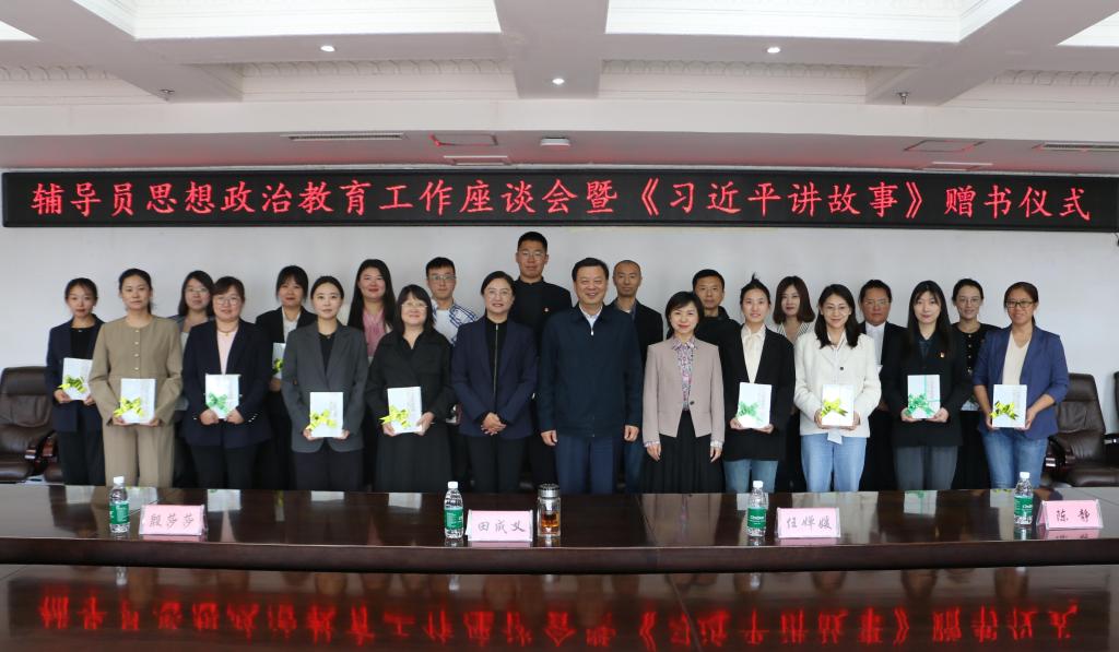 为贯彻落实习近平总书记在全国教育大会上的重要讲话精神,坚持不懈用习近平新时代中国特色社会主义思想铸魂育人,进一步明晰辅导员思想理论教育和价值引领工作职责,9月24日上午,我校在行政楼三楼会议室召开辅导员思想政治教育工作座谈会暨《习近平讲故事》赠书仪式。校党委副书记田成义出席会议并讲话。学生工作部部长任婵媛、副部长殷莎莎及各学院辅导员代表参加会议。任婵媛主持会议。