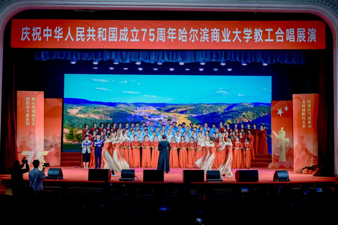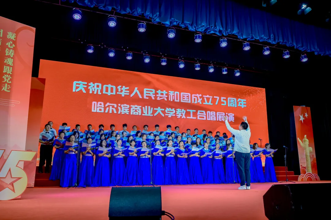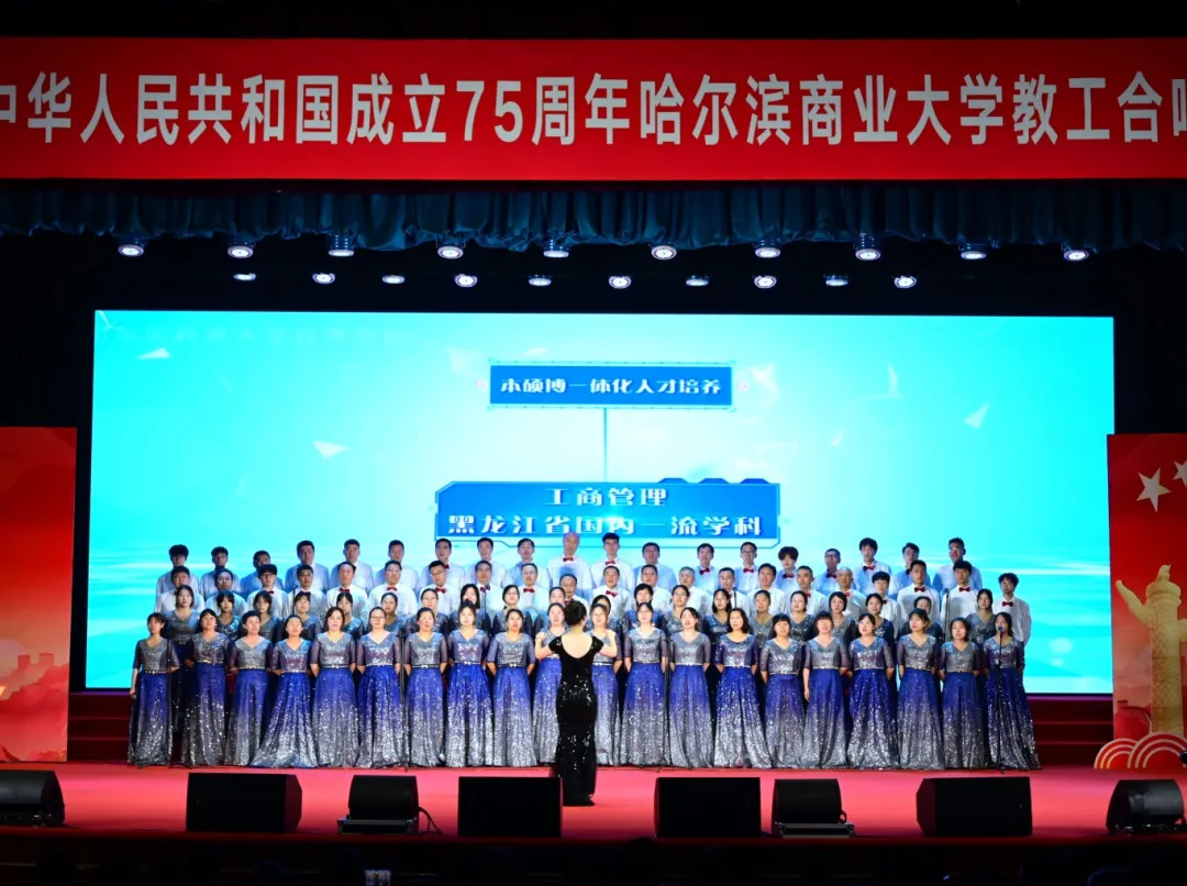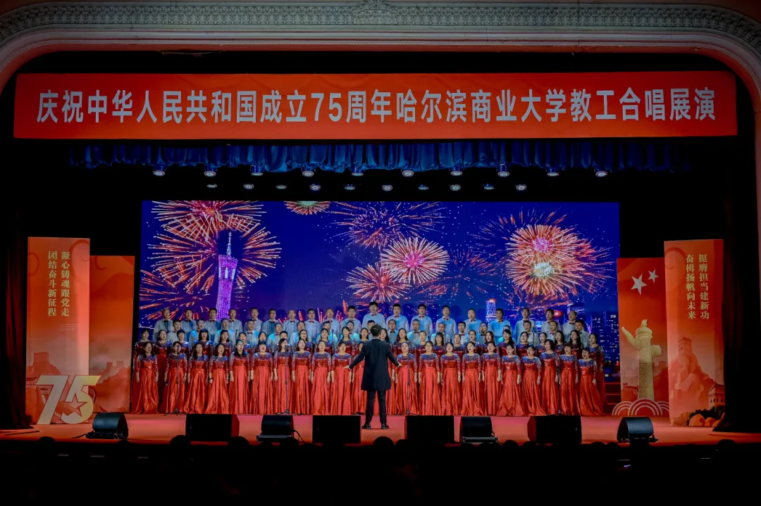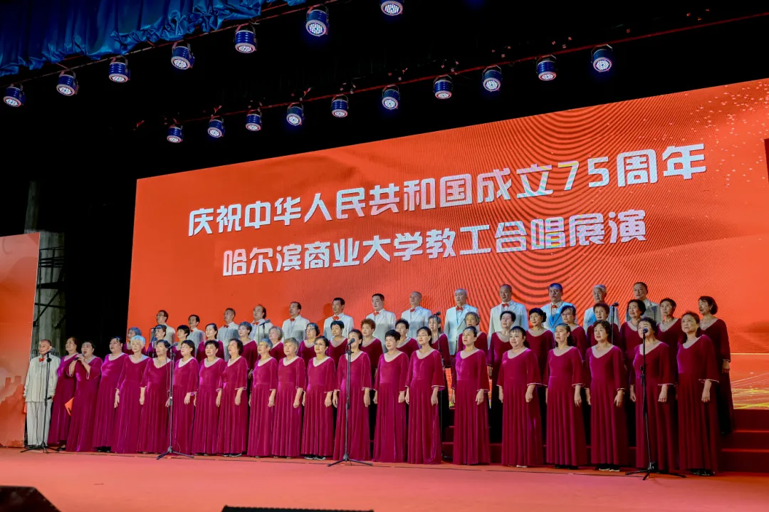 金秋送爽,丹桂飘香,中华沃土硕果累累。岁月峥嵘,山河壮丽,神州大地繁花似锦。栉风沐雨,春华秋实,伟大祖国迎来了75华诞。9月25日,“中国梦劳动美”——“凝心铸魂跟党走 团结奋斗新征程”哈尔滨商业大学庆祝中华人民共和国成立75周年教工合唱展演在南区大礼堂拉开帷幕。校领导,各职能部门、学院教师,离退休老干部欢聚一堂,共同迎接祖国75周年华诞。12支合唱联队、27个演唱单位、近千名教师,用真挚的情感和纯真的歌声,唱响对祖国的深切热爱与无限忠诚。