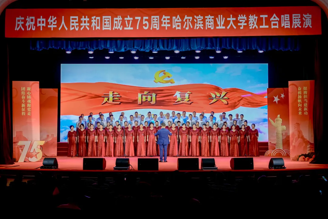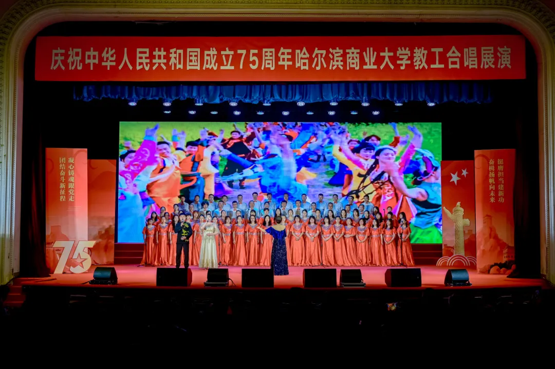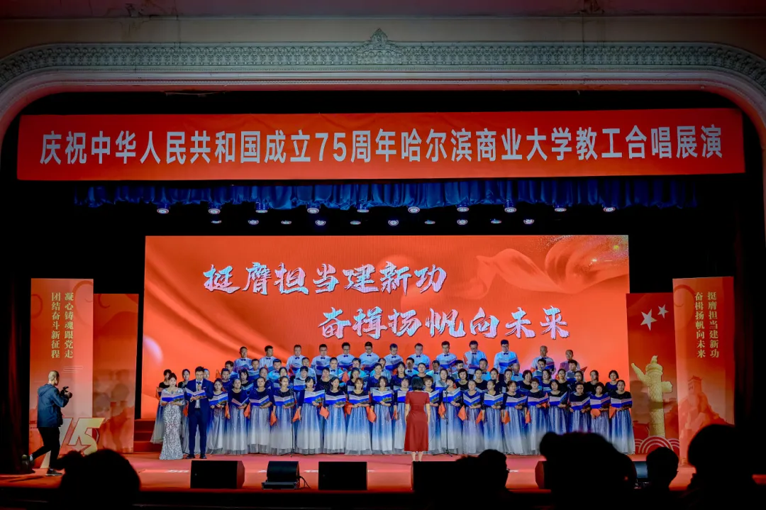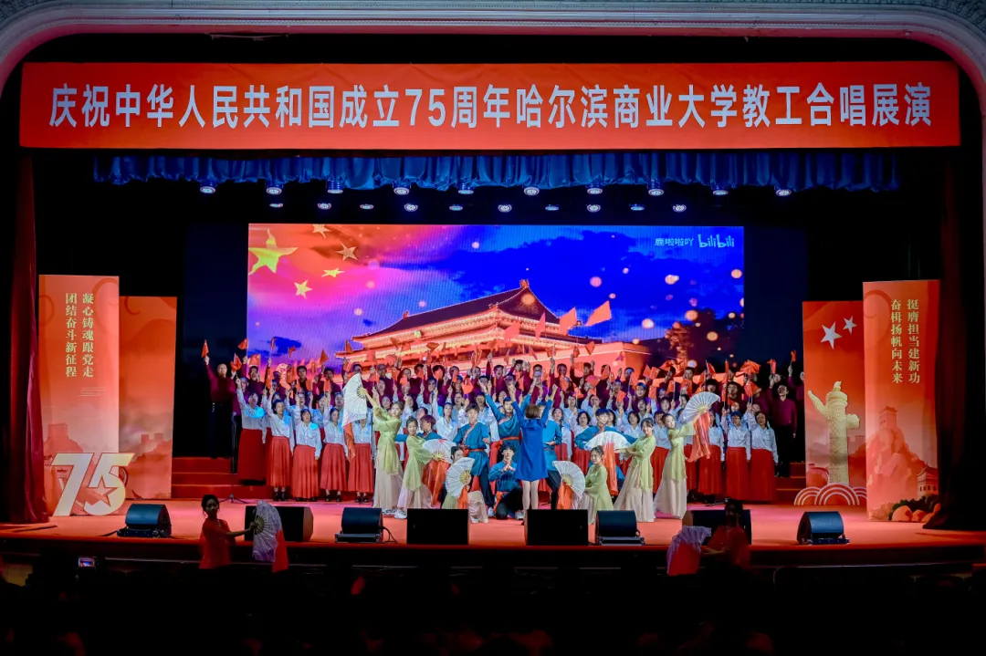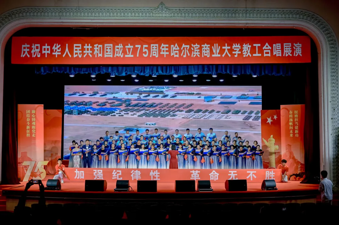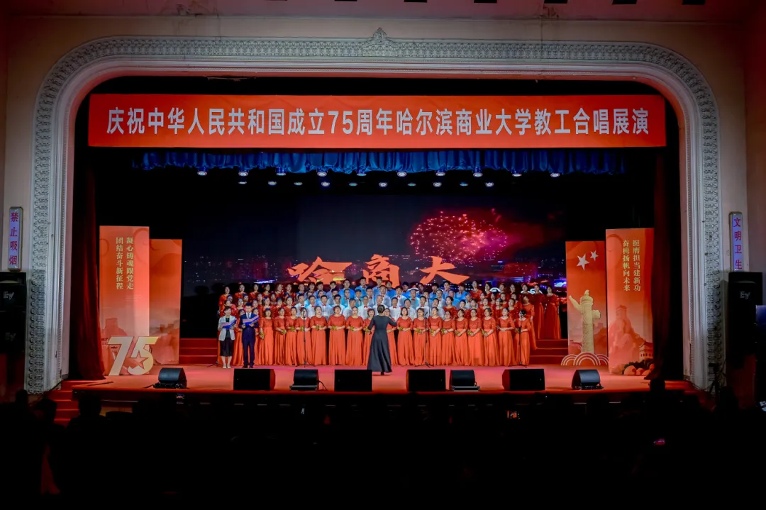 金秋送爽,丹桂飘香,中华沃土硕果累累。岁月峥嵘,山河壮丽,神州大地繁花似锦。栉风沐雨,春华秋实,伟大祖国迎来了75华诞。9月25日,“中国梦劳动美”——“凝心铸魂跟党走 团结奋斗新征程”哈尔滨商业大学庆祝中华人民共和国成立75周年教工合唱展演在南区大礼堂拉开帷幕。校领导,各职能部门、学院教师,离退休老干部欢聚一堂,共同迎接祖国75周年华诞。12支合唱联队、27个演唱单位、近千名教师,用真挚的情感和纯真的歌声,唱响对祖国的深切热爱与无限忠诚。