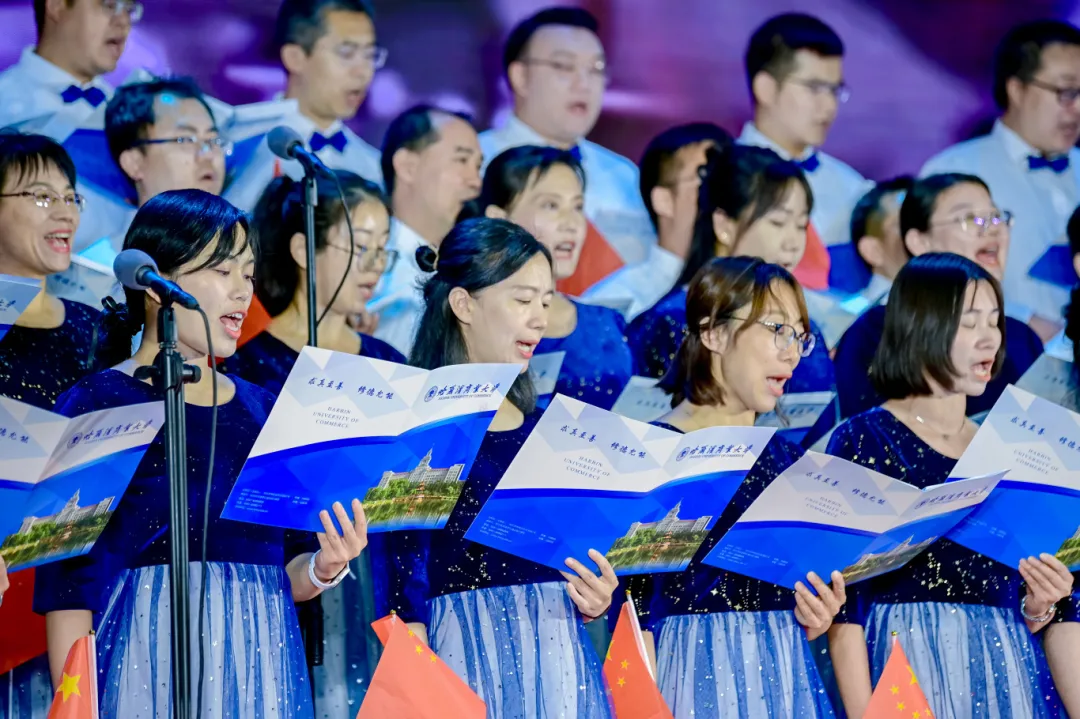 歌声澎湃融入了我们心灵的呼唤,誓言铿锵铸就了我们奋斗的方向。飞扬的歌声,吟唱的是难忘的岁月;熟悉的旋律,演绎的是时代的激昂。此次合唱展演不仅是一场音乐的盛宴,更是一次精神的升华。嘹亮的歌声萦绕,进一步营造了学校共庆祖国华诞、共享祖国荣光、共铸复兴伟业的热烈氛围,进一步培育和践行了爱国主义精神和社会主义核心价值观。在歌声里,哈尔滨商业大学全体教职工们共同回顾了新中国成立75年来的辉煌历程,坚定了理想信念,筑牢了信仰之基,激发了爱党爱国爱社会主义和爱校兴校荣校热情,将不忘初心,凝心聚力,踔厉奋发,筑梦前行,以昂扬的斗志和奋发有为的姿态,为学校建成商科特色鲜明的高水平多科性教学研究型大学而不懈奋斗,为龙江高质量发展、可持续振兴持续奋进,为推进中国式现代化贡献力量。