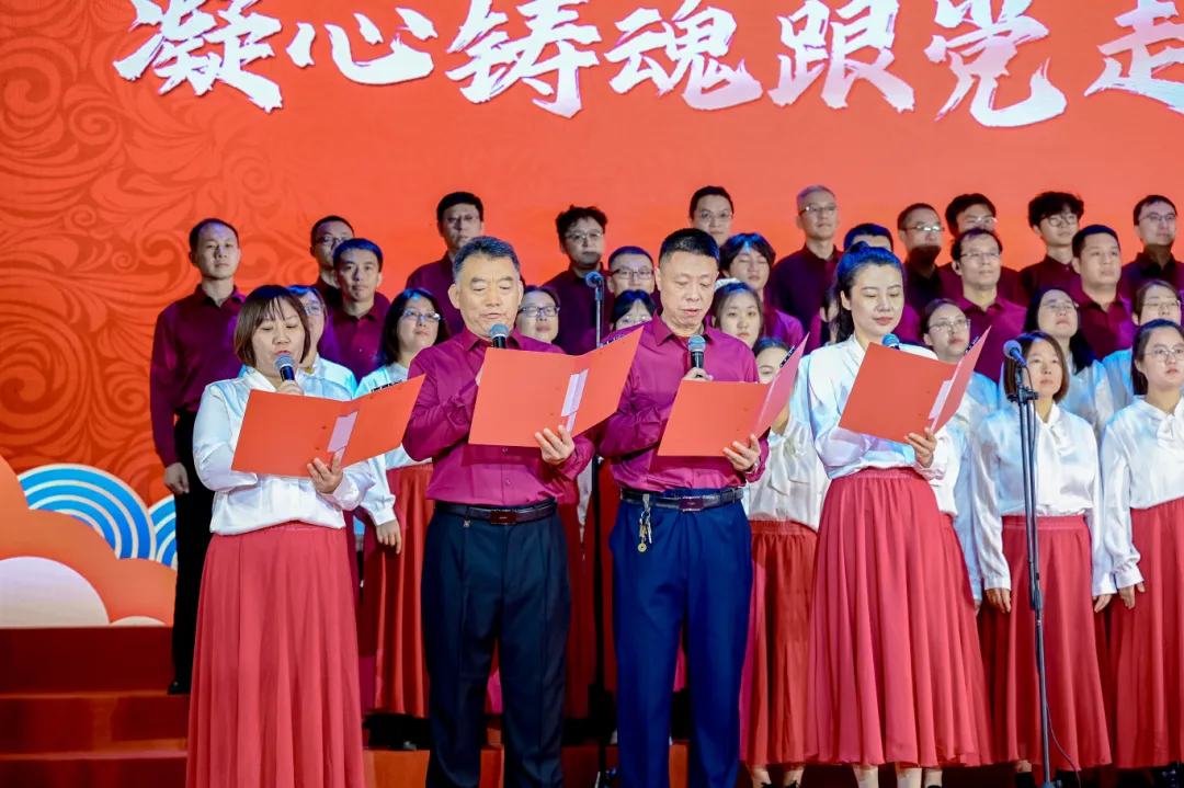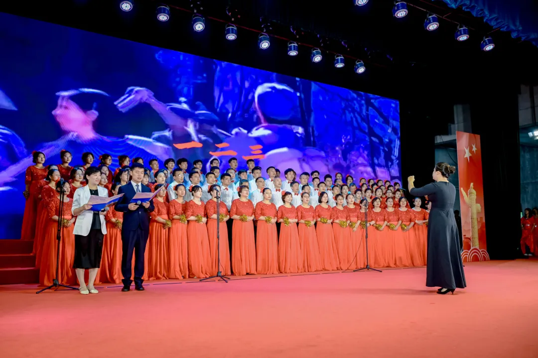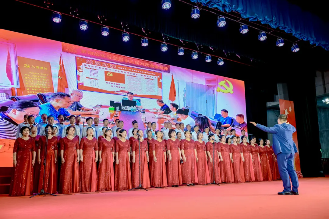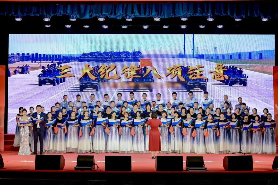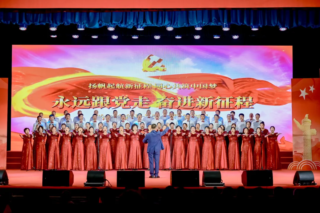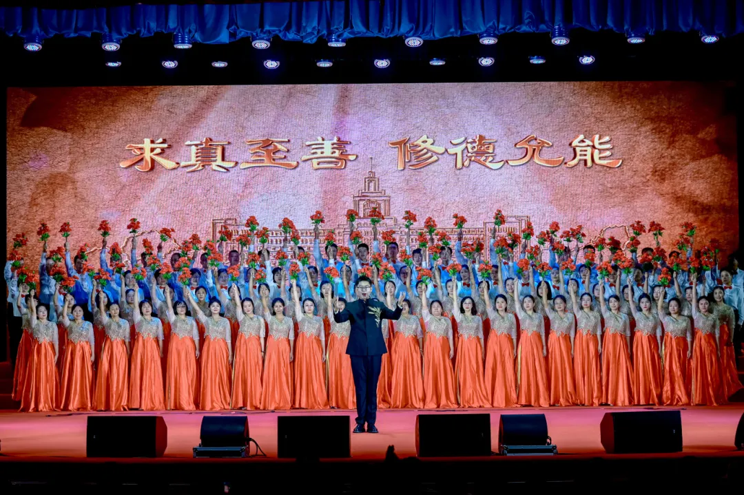 后勤管理处的教职工们以《走向复兴》和《没有共产党就没有新中国》两首激昂的歌曲,为整场展演画上了圆满的句号。他们的歌声中充满了对未来的信心和期望,也表达了对党的无限忠诚和对祖国的深切祝福。