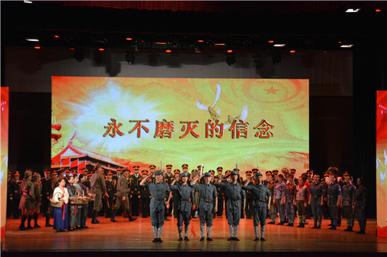 本场演出的剧目是大型红色歌舞史诗《永不磨灭的信念》,本剧由序曲、《黑土之殇》、《集结之号》、《暗夜之星》、《英雄之愧》、《胜利之光》和尾声七个板块构成。内容以一位93岁高龄抗联老战士李敏的回忆形式贯穿,回顾了中国抗联在中国共产党的领导下,为争取民族独立和解放,前赴后继浴血抗战的历史,歌颂了英勇战斗、勇挑极限、舍生忘死的东北抗联精神。整场演出,或凄婉动人,或激越难抑为全场观众带来极高的艺术享受的同时,更点燃了观众们的爱国情怀。