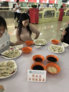 为方便毕业生,餐饮中心分别在南北四个校区食堂设立了饺子供应点,自6月8日起,毕业生凭专用饺子券,就可以在供应点免费领取一份现包现煮的水饺。