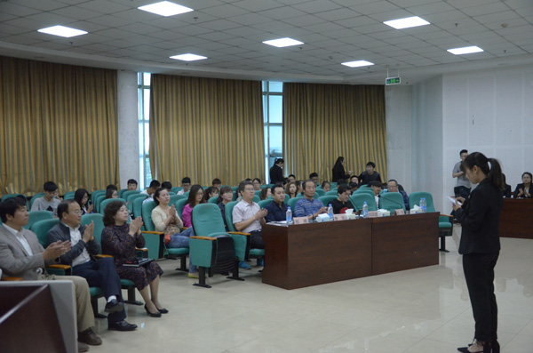 比赛从8点30分开始,参赛选手按照抽签顺序依次上台朗诵,所有选手都在赛前做了充分的准备,为朗诵制作了PPT,配备了相应的背景音乐,均能做到脱稿朗诵。比赛选手所选题材贯穿古今跨越千年,较好展示了我国优秀传统文化经典,既有汉乐府《短歌行》,也有唐宋诗词《将敬酒》、《声声慢》《雨霖铃》等,还有现当代诗歌《再别康桥》、《我爱这土地》、《致橡树》、《面朝大海 春暖花开》等,体现出了商大学子热爱祖国、博古通今、胸襟开阔、思想活跃的人文素养。大赛选手慷慨激昂的诵读,洋溢着爱国主义的热情、散发出经典文化的魅力,丰富多样的表现形式更是为比赛锦上添花,把台下观众一同带入诗歌所吟诵的世界。四位评委从比赛题材的选取、对作品的理解、语言的表达、朗诵技巧等方面,对每位参赛选手的朗诵做了专业、细致的点评。费军老师和祁博老师现场示范朗诵了《再别康桥》和《致橡树》作品,他们的声音直抵在场每一位师生的内心深处,为大赛增添了异彩。比赛结束后,参赛选手就朗诵相关问题向评委老师请教,评委们一一给予热情指导。经过激烈的角逐,最终按照得分,排名前30名的选手进入复赛。