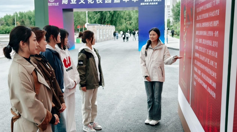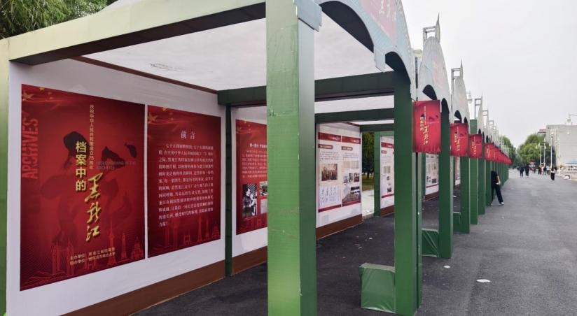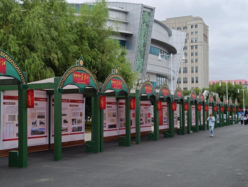 在庆祝中华人民共和国成立75 周年之际,由黑龙江省档案馆主办,哈尔滨商业大学协办的“档案中的黑龙江——新中国成立75周年档案图片展”于9月30日在哈尔滨商业大学A区步行街正式开展,全校师生同上一堂“思政大课”,接受了一次生动的爱国主义教育。这也是该专题展在全省高校的首次展出。