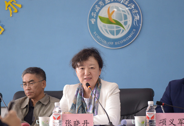 张晓丹发表了重要讲话,她围绕我校科研工作的形势和任务讲了四方面问题。首先,大学教师和研究人员必须认真搞科研,这是《中华人民共和国高等教育法》的规定,是现代大学基本职能的要求,是我校教学研究型大学定位的内在需要,更是提升学校总体实力的必由之路;其次,我校科研工作要充分发掘历史积淀,突出自身特色,凝炼主攻方向,打造高水平特色平台;第三,在科研服务谁的问题上,我校科研应立足本地区,为地方经济社会发展服务、为大美龙江贡献学术智慧;第四,学校、学院都要积极创造条件,加强顶层制度设计,优化激励约束机制,营造良好科研环境和浓厚学术氛围,使全校上下争创科研佳绩、出高水平研究成果形成蔚然风气。张晓丹最后衷心祝愿经济学院科研工作再传佳音,继续发挥经济研究重镇的良好传统,为学校科研工作贡献力量,更欢迎学院教师对学校科研管理、职称评价方面的制度和政策提出好的意见、建议。